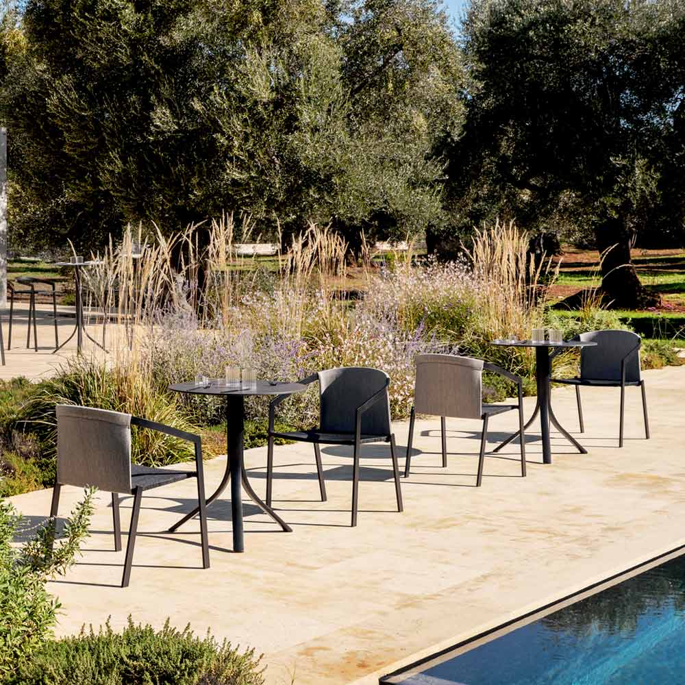 La collezione si caratterizza per il dettaglio della gamba in alluminio come punto focale abbinato al rigore formale, per vivere l'esterno nei termini di massimo relax e di convivialità, accomodati sul divano, attorno a un tavolo o sdraiati sul lettino.