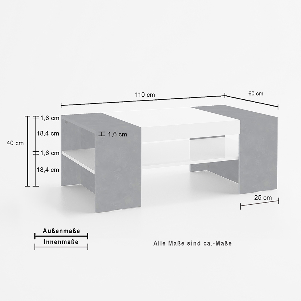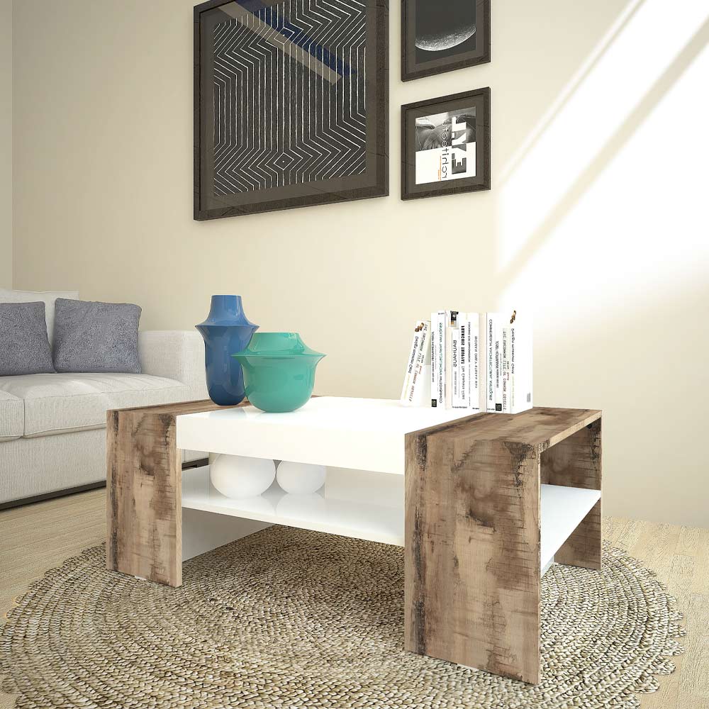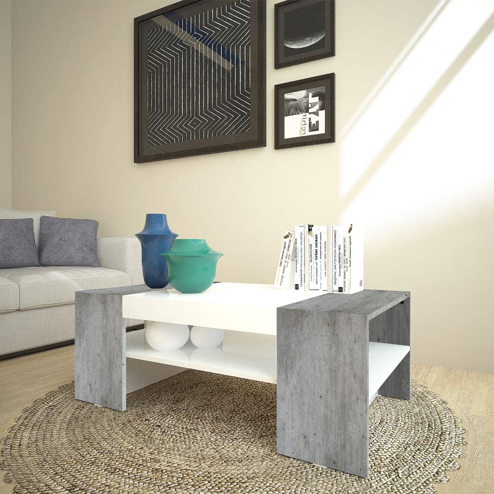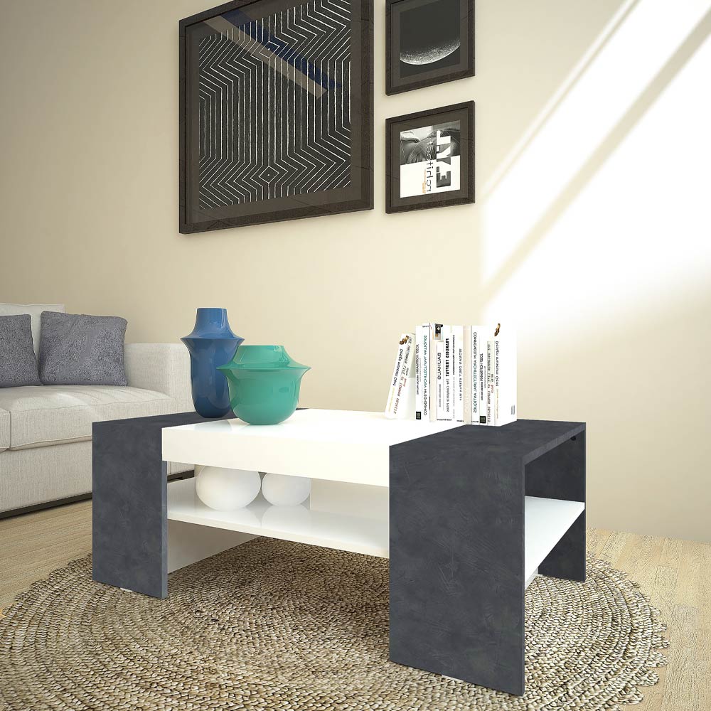 Tavolino da caffè per il salotto in legno bianco lucido 3 finiture made in Italy.