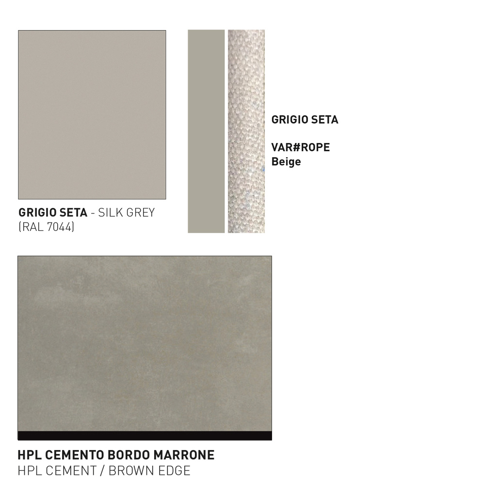 - gamba grigio seta, intreccio VAR#ROPE beige, piano in hpl cemento;