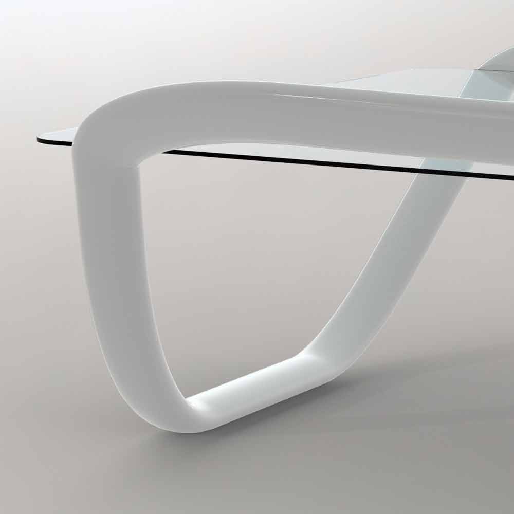 Tavolo design moderno in vetro e Solid Surface bianco laccato Zad Materiale: Solid Surface; Finitura: Laccata lucida/opaca bianca Designer: Studioventotto Misure: L. 140 x P. 116 x H. 47 cm Peso: 14 Kg