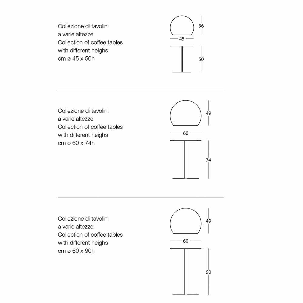 Tavolino da caffè di design in metallo di vari colori e in 3 diverse dimensioni, lusso made in Italy.