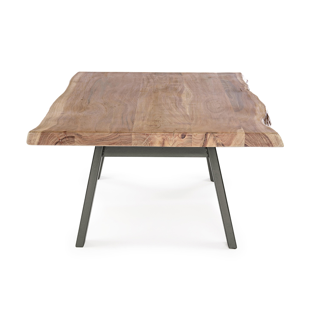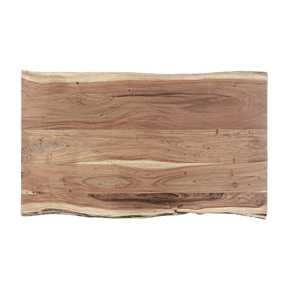 La sua vera caratteristica principae è data dal piano in legno di acacia con bordi irregolari (effetto legno vivo) lavorato a mano con finitura a base di vernice poliuretanica.