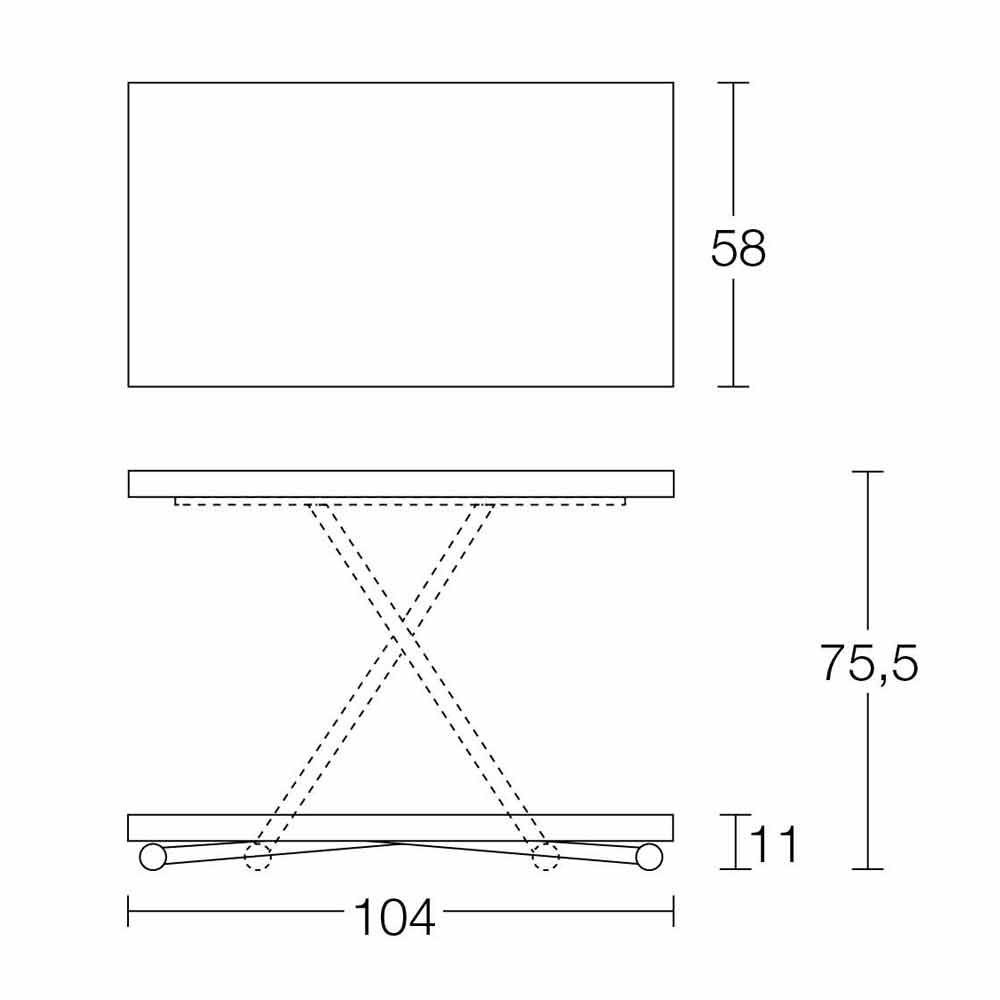 tavolino da salotto a tavolo per sala da pranzo o cucina tramite un meccanismo a gas regolabile in altezza al millimetro da 11 cm a 75,5 cm.