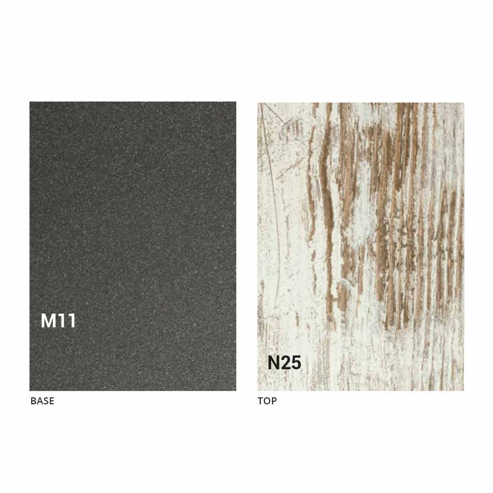 Il piano e la base del tavolo possono essere personalizzati con diverse finiture a campione. Per informazioni contattaci tramite l'apposito form "