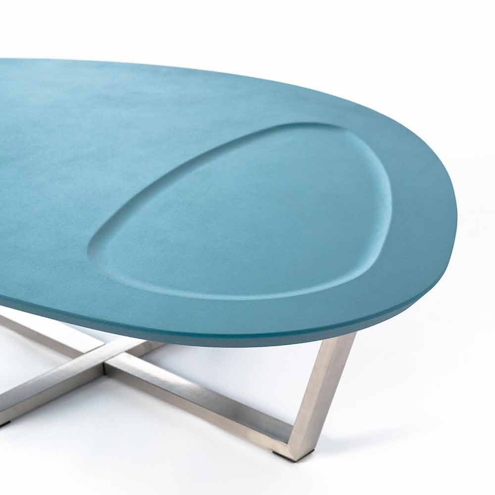 tavolino da salotto sagomato realizzato con un piano in