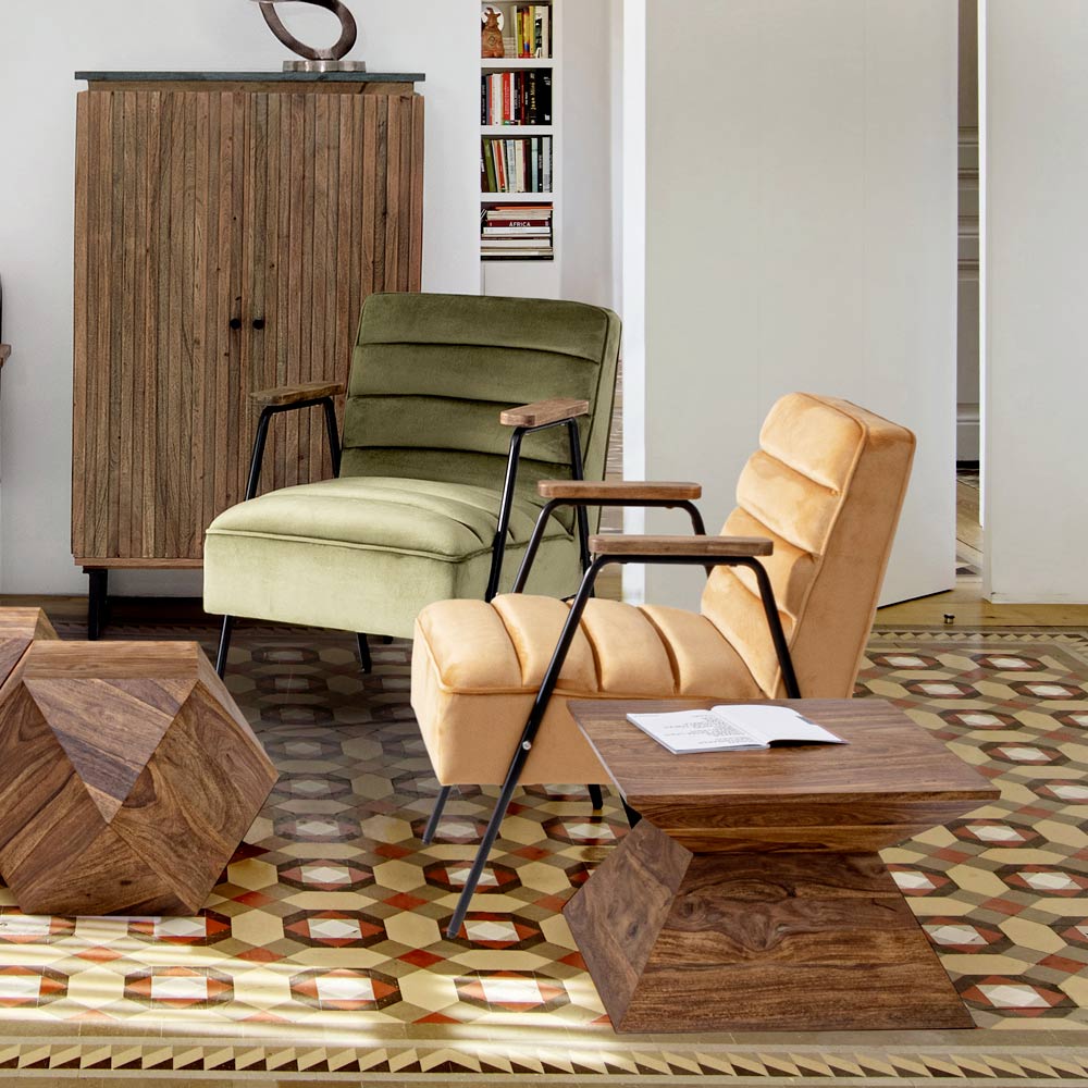 Tavolino per il salotto dal design piramidale in legno sheesham.