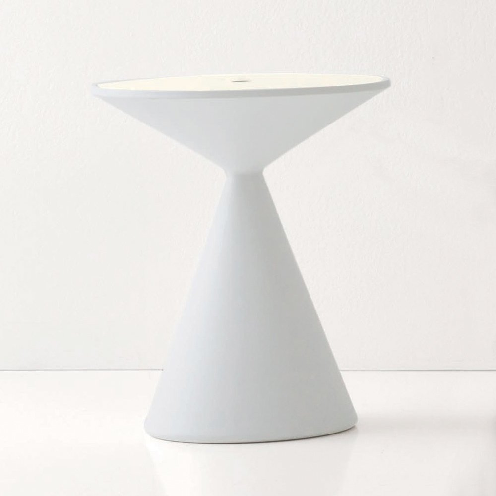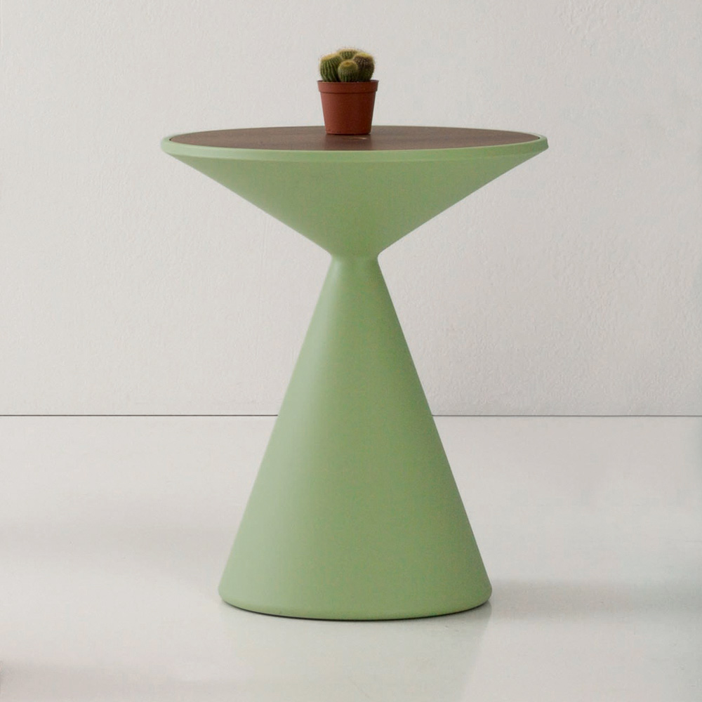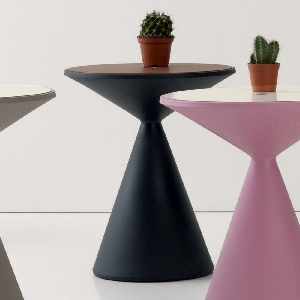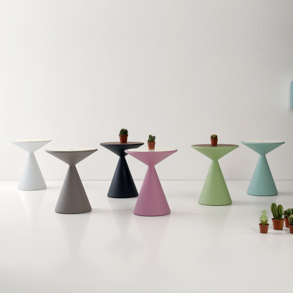 Tavolino da salotto rotondo in polietilene colorato con contenitore interno made in Italy.