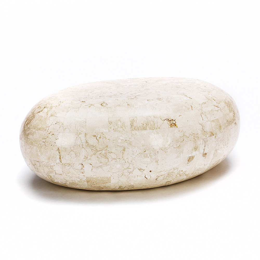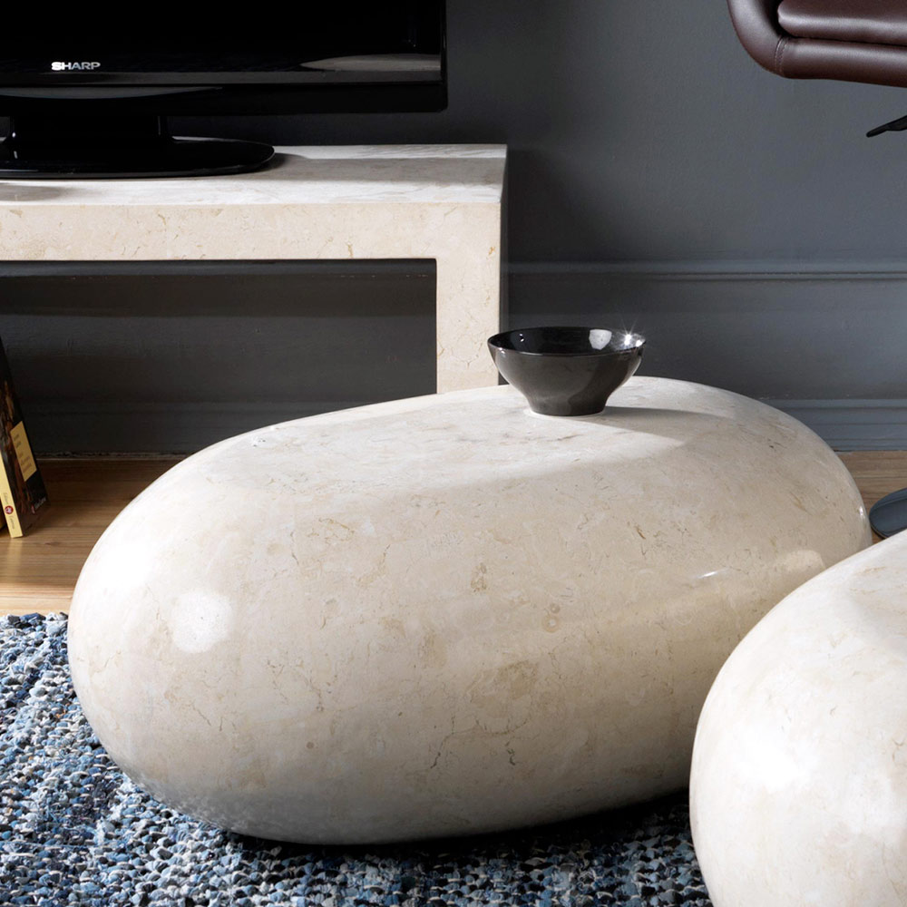 Tavolino costituito da un blocco romboidale in pietra fossile. Presenta un design unico, semplice ed essenziale, perfetto per arredare sia ambienti classici che moderni.