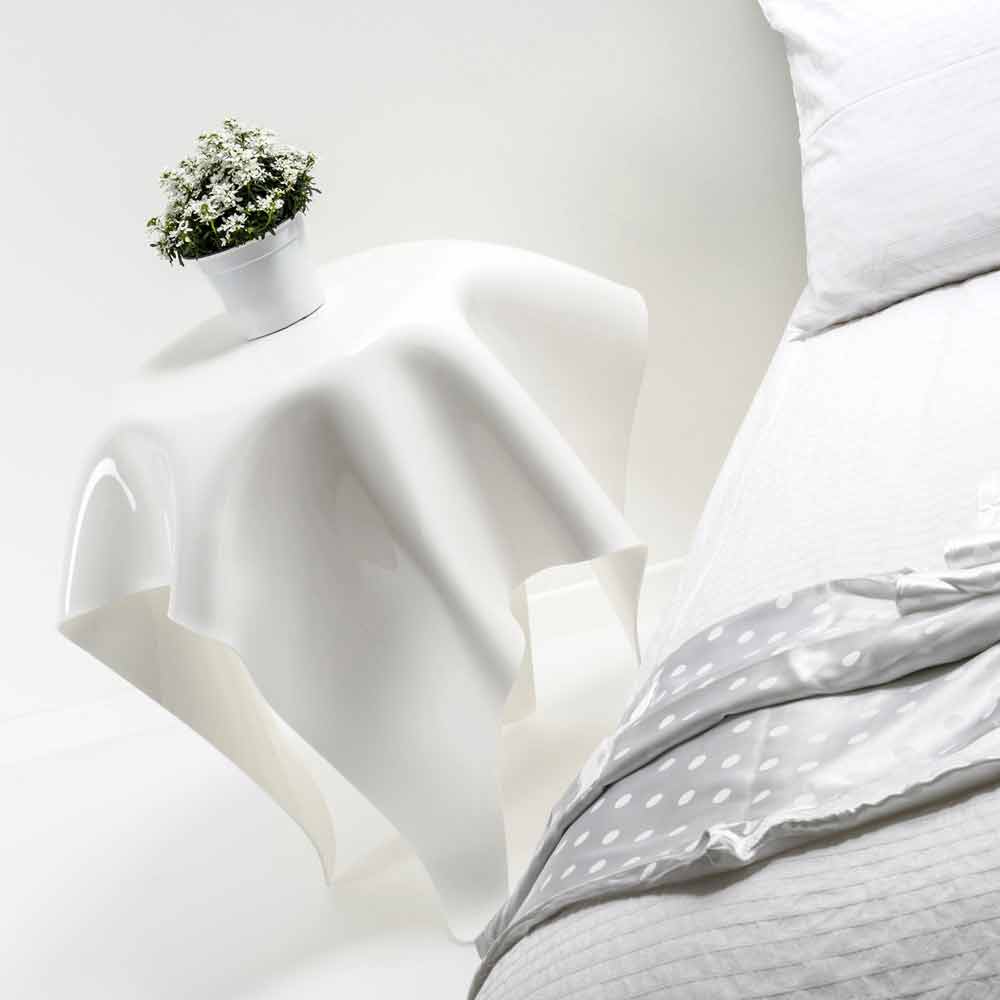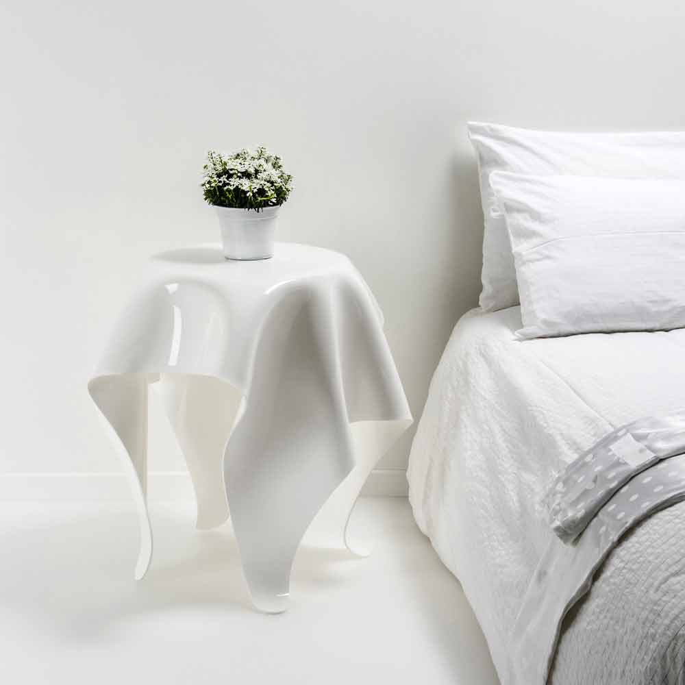 Il tavolo Otto drappeggiato è un pezzo unico, un’opera d’arte moderna. Una lastra in purissimo polimero vergine 100% di plexiglass PMMA di colore bianco viene drappeggiata a mano ad alte temperature, sino a creare un tavolino unico ed irripetibile. La struttura realizzata è totalmente autoportante. Il plexiglass è antiurto, indeformabile, inalterabile e termoisolante. La luminosità e la brillantezza si mantengono costanti ed inalterati nel tempo. Il plexiglass PMMA da polimero vergine utilizzato da è atossico, ipoallergico, inodore ed antibatterico. Riciclabile 100%. Le dimensioni possono subire piccole variazioni dovute alla realizzazione artigianale dell’opera d’arte. Pensato, progettato e realizzato in Italia, con materiali italiani.