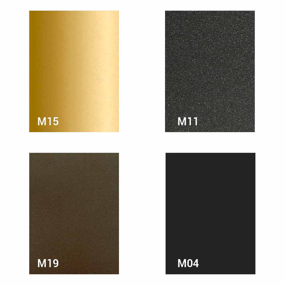 metallo verniciato: oro lucido, grafite goffrato, bronzo goffrato o nero opaco.