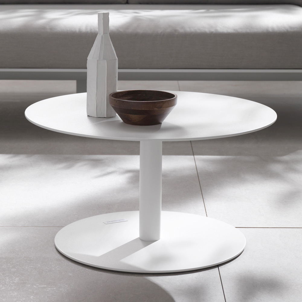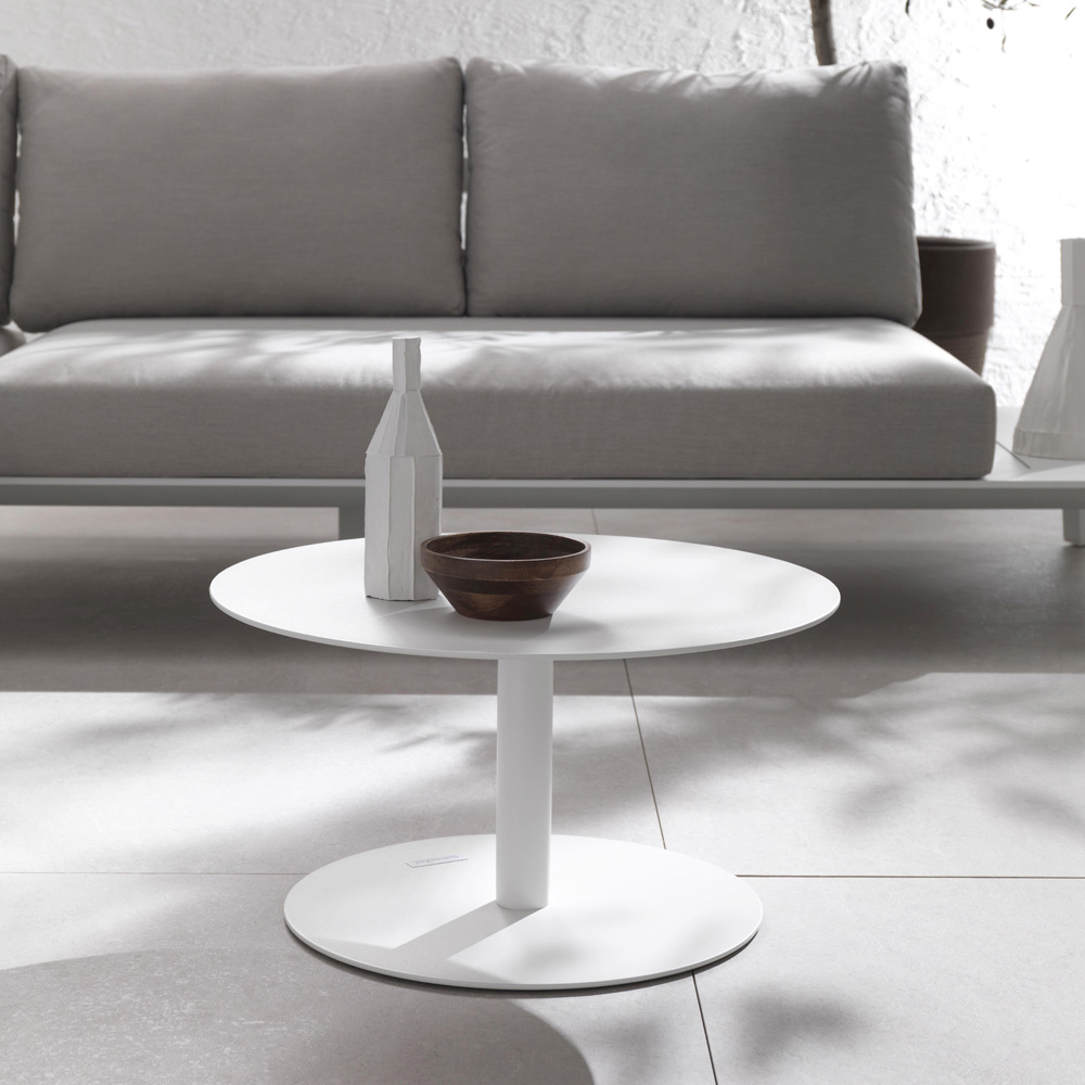 Tavolino da appoggio per il giardino composto da piano e struttura in alluminio verniciato a polveri epossidiche nella colorazione bianca. Caratterizzato da un design morbido, lineare e semplice, questo tavolino è perfetto per arredare qualsiasi ambiente outdoor come terrazze, piscine e giardini, trovando allo stesso tempo collocamento anche nelle svariate zone living interne funzionale come punto d'appoggio.