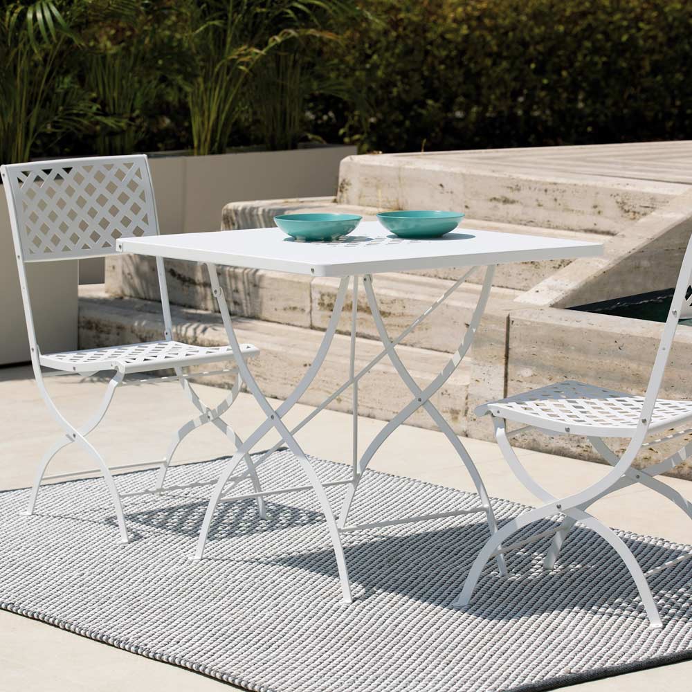 Questo tavolino pieghevole è pensato per essere un complemento d'arredo d'impatto ma estremamente resistente dovuto alla qualità dei suoi materiali. Questo è un prodotto realizzato al 100% in Italia. La sua struttura è in acciaio ed è rafforzata mediante un processo di zincatura per rendere questo prodotto resistente agli agenti corrosivi ed atmosferici. La sua struttura pieghevole fa di questo tavolo un complemento d'arredo perfetto per i momenti di convivialità ed è ottimo per ottimizzare gli spazi in un secondo momento.