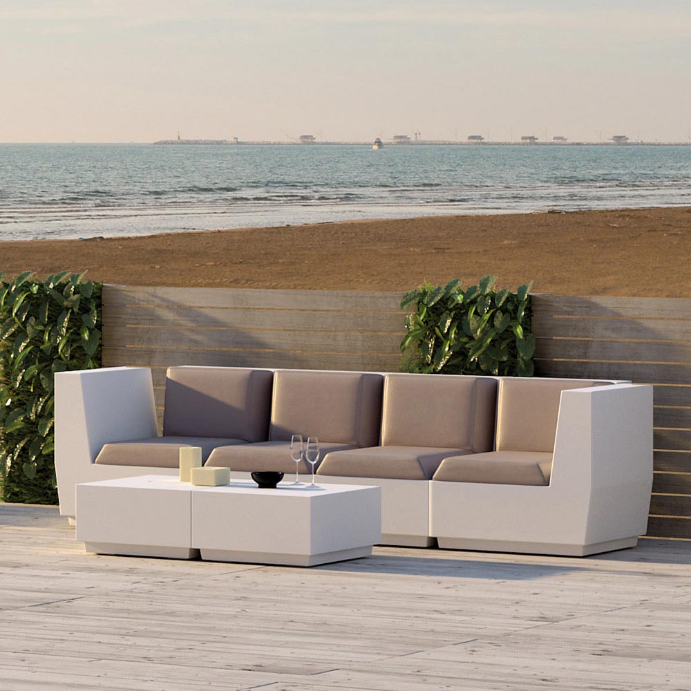 Tavolino da giardino in polietilene opaco con piedini regolabili Made in Italy.