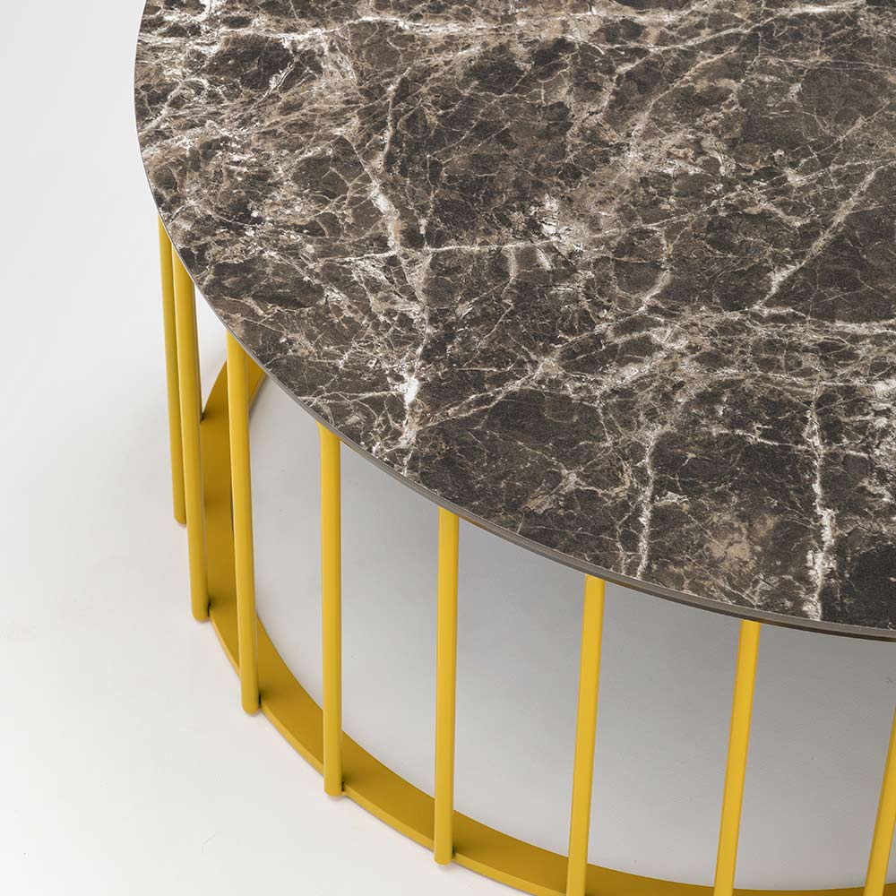 Tavolino da esterno in vetroceramica e metallo Made in Italy.