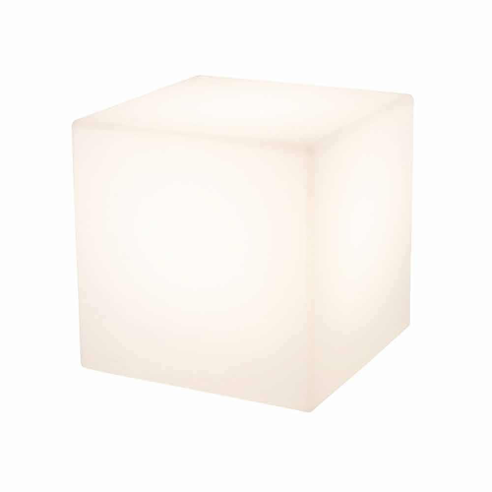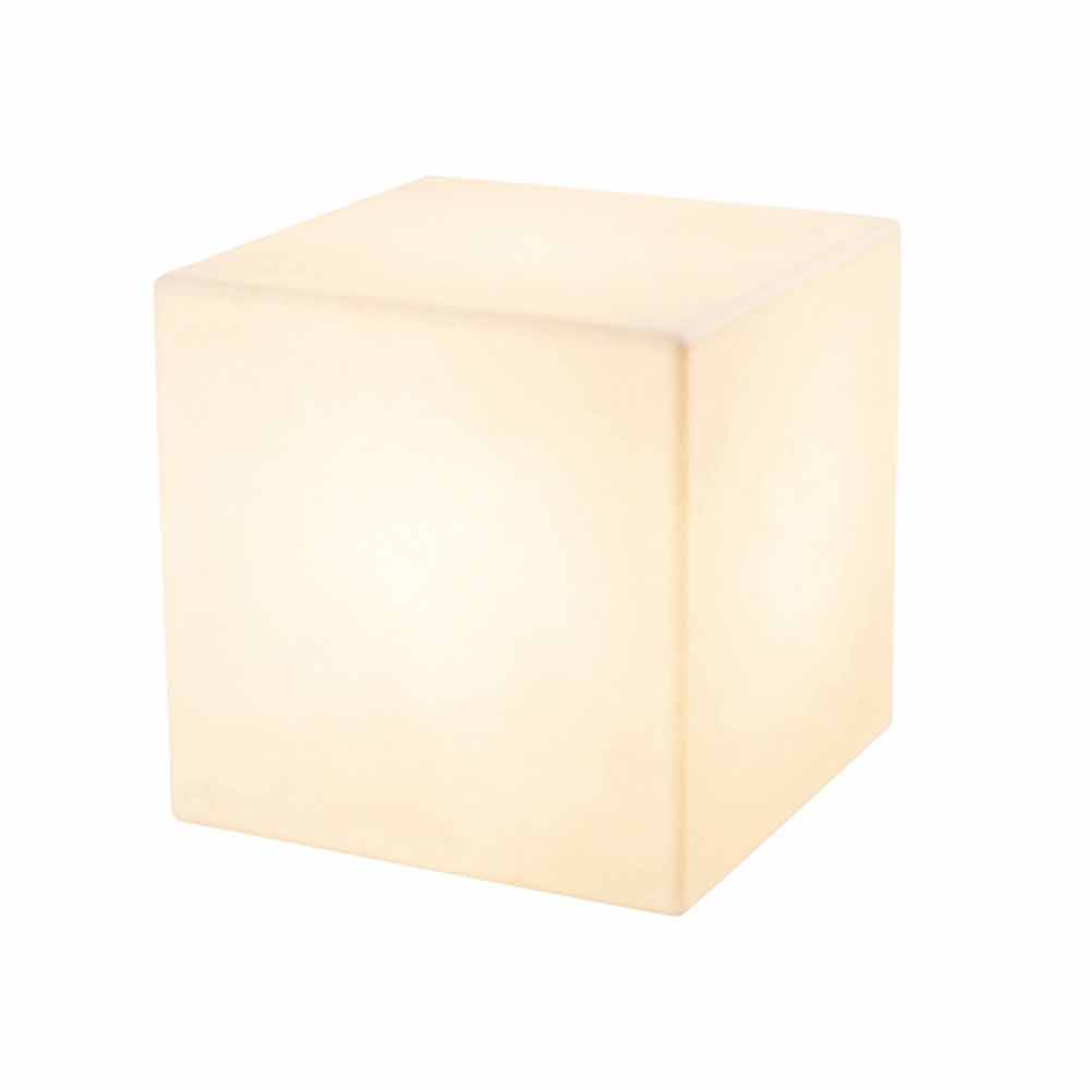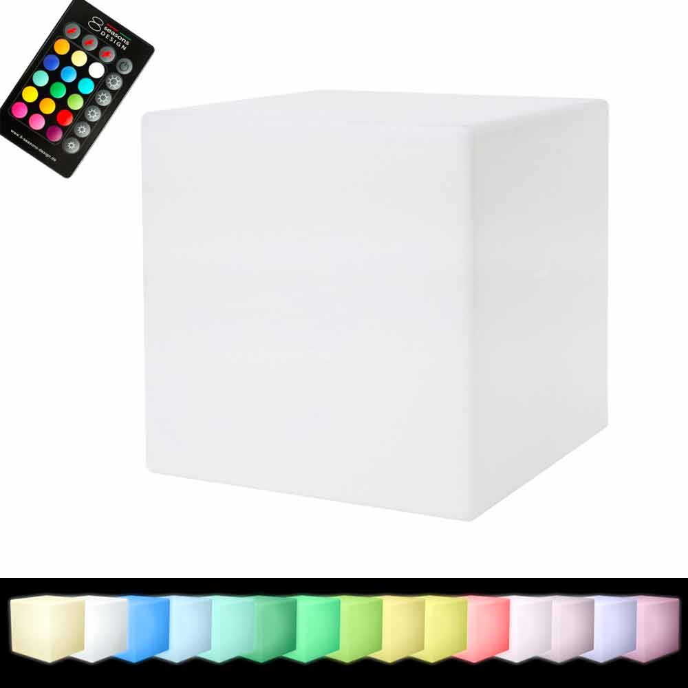 Tavolino luminoso quadrato per il giardino o il salotto in polietilene colorata e riciclabile di design moderno.