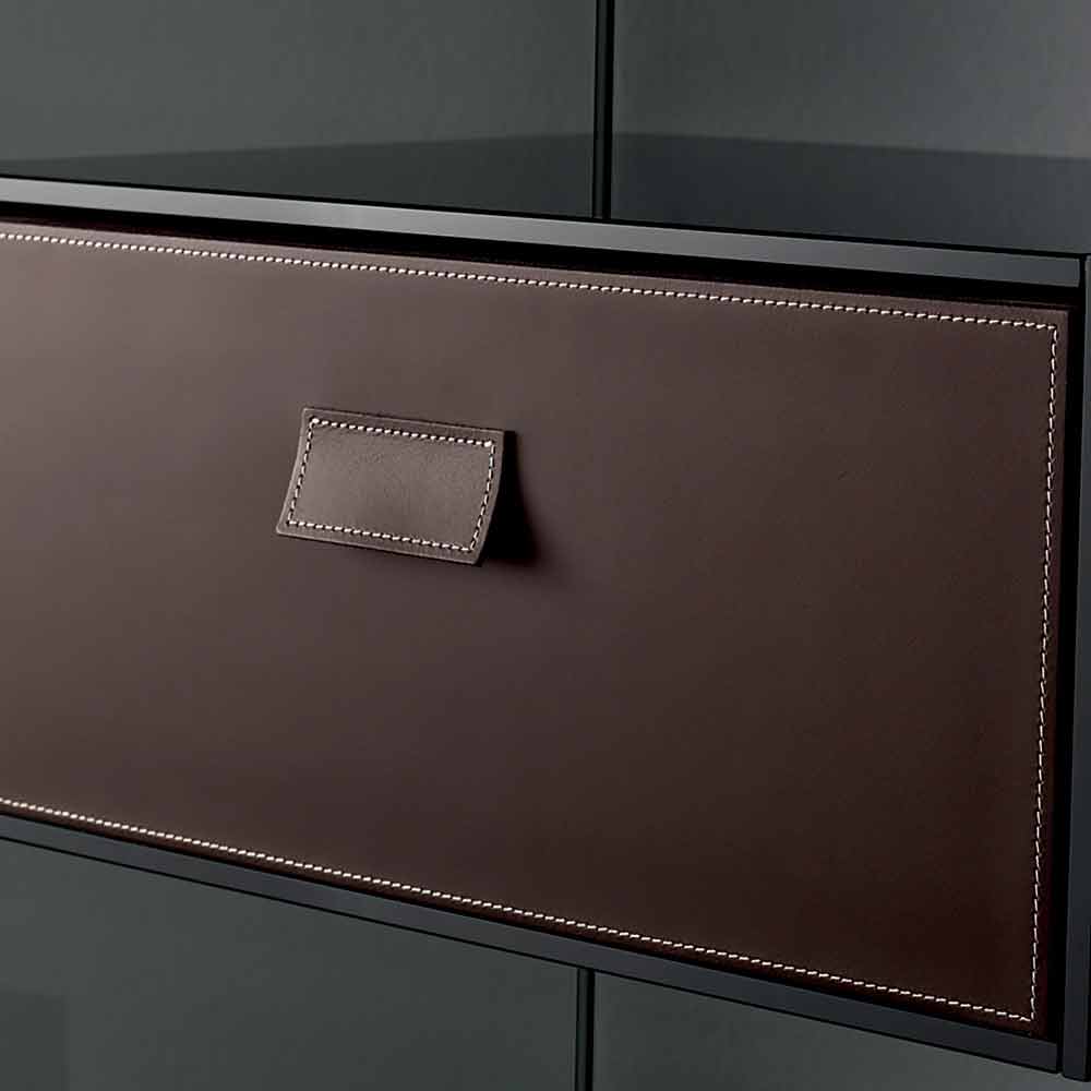 È incluso un cassetto in cuoio testa di moro con una maniglia. Il carico ammesso per ogni ripiano è di 15 kg.