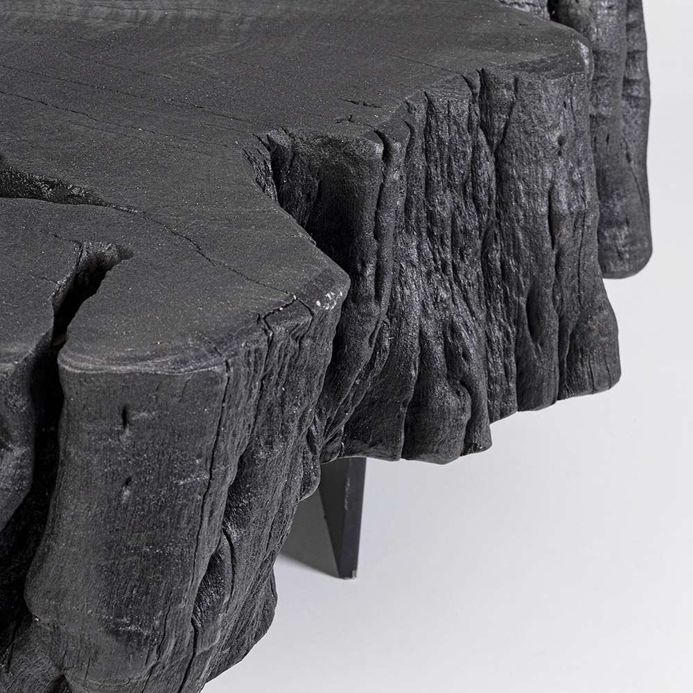 La peculiarità del complemento è data dal piano in prezioso legno di acacia che consiste in una sezione origianale di tronco con finitura nera a base di vernice poliuretanica.
