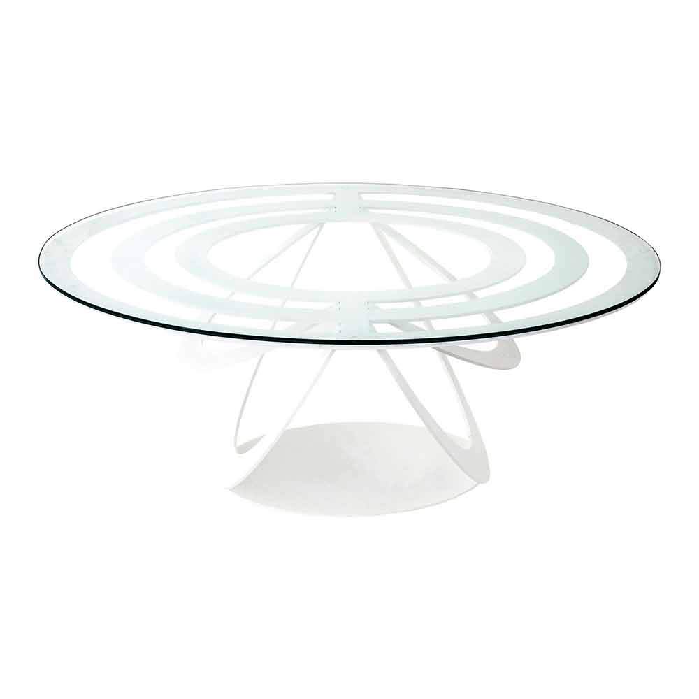Tavolino ovale da caffè moderno con piano in vetro e base in ferro bianco o ardesia made in Italy.