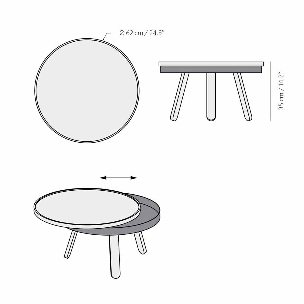 Misura (tavolino chiuso): diametro 62 x H 35 cm