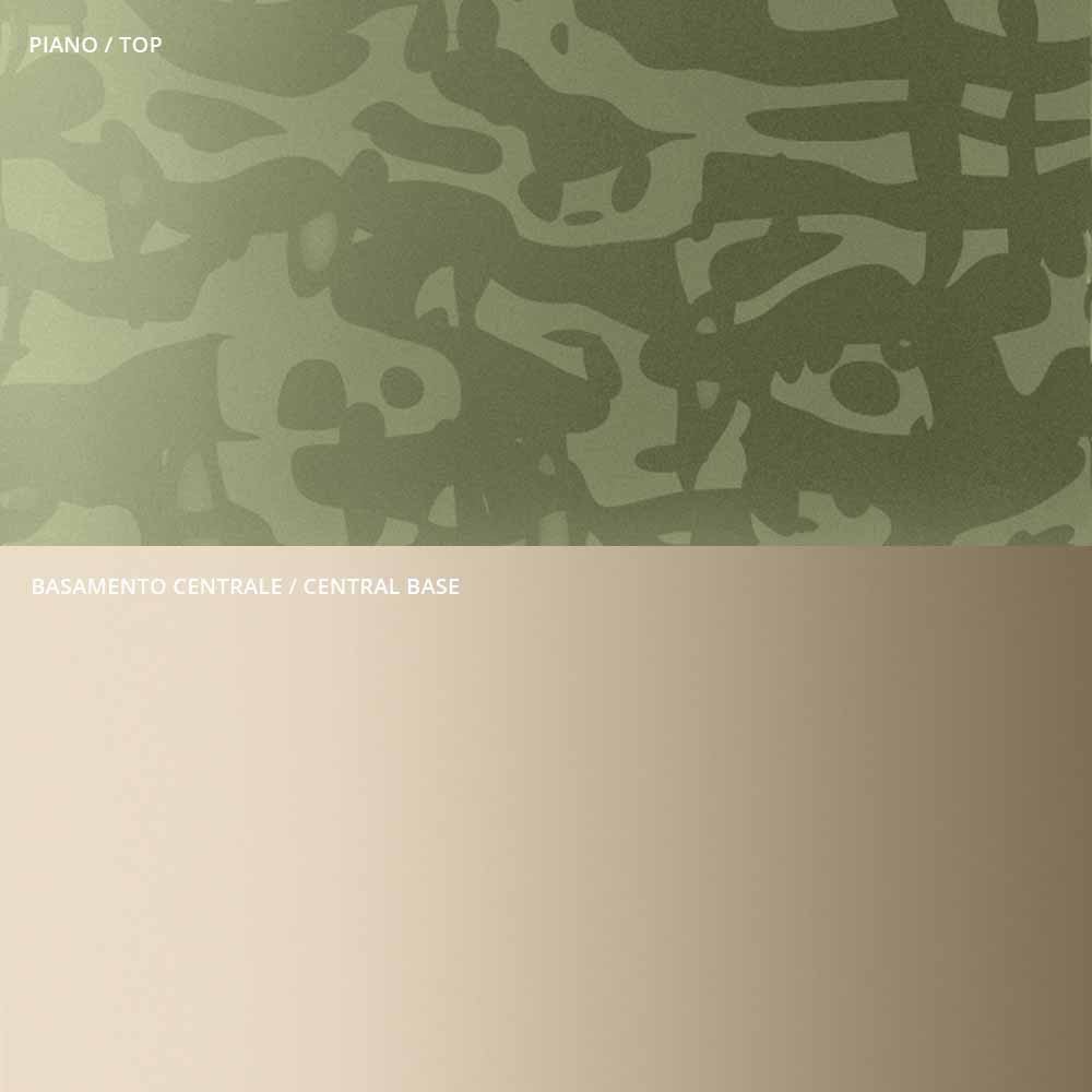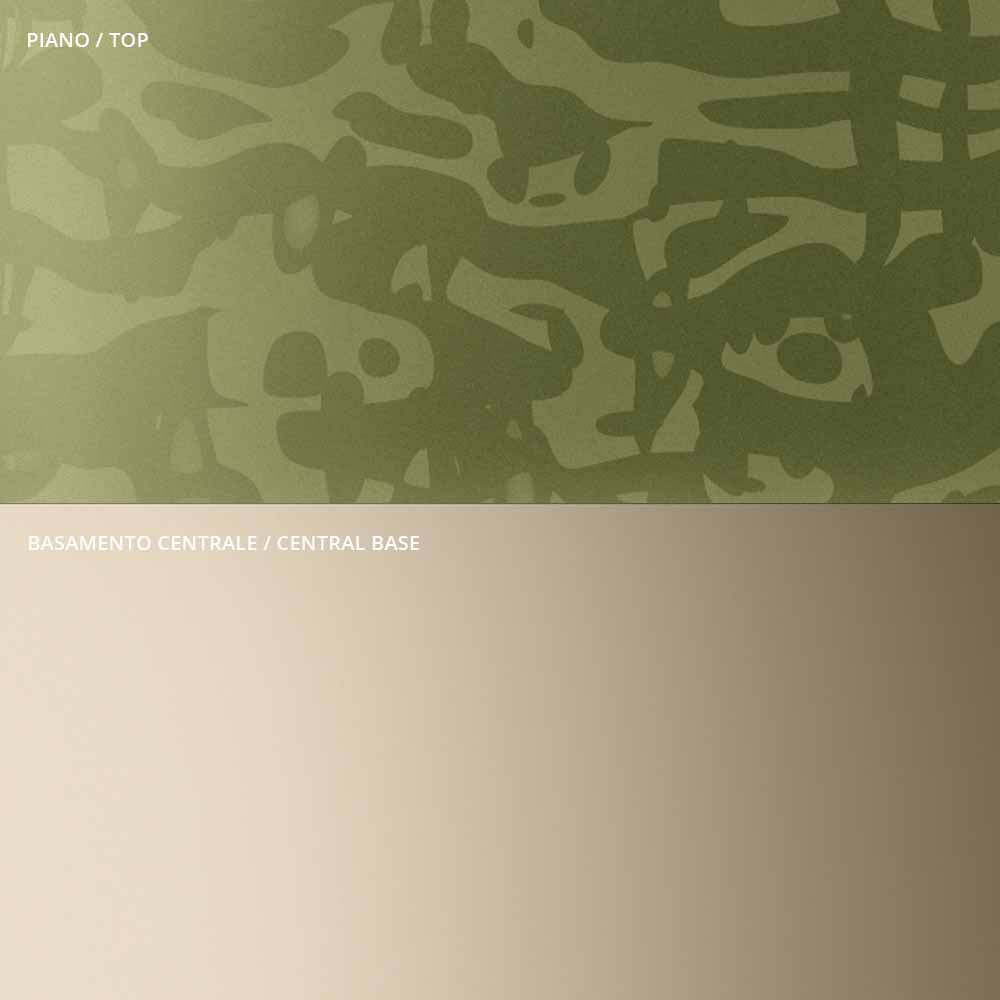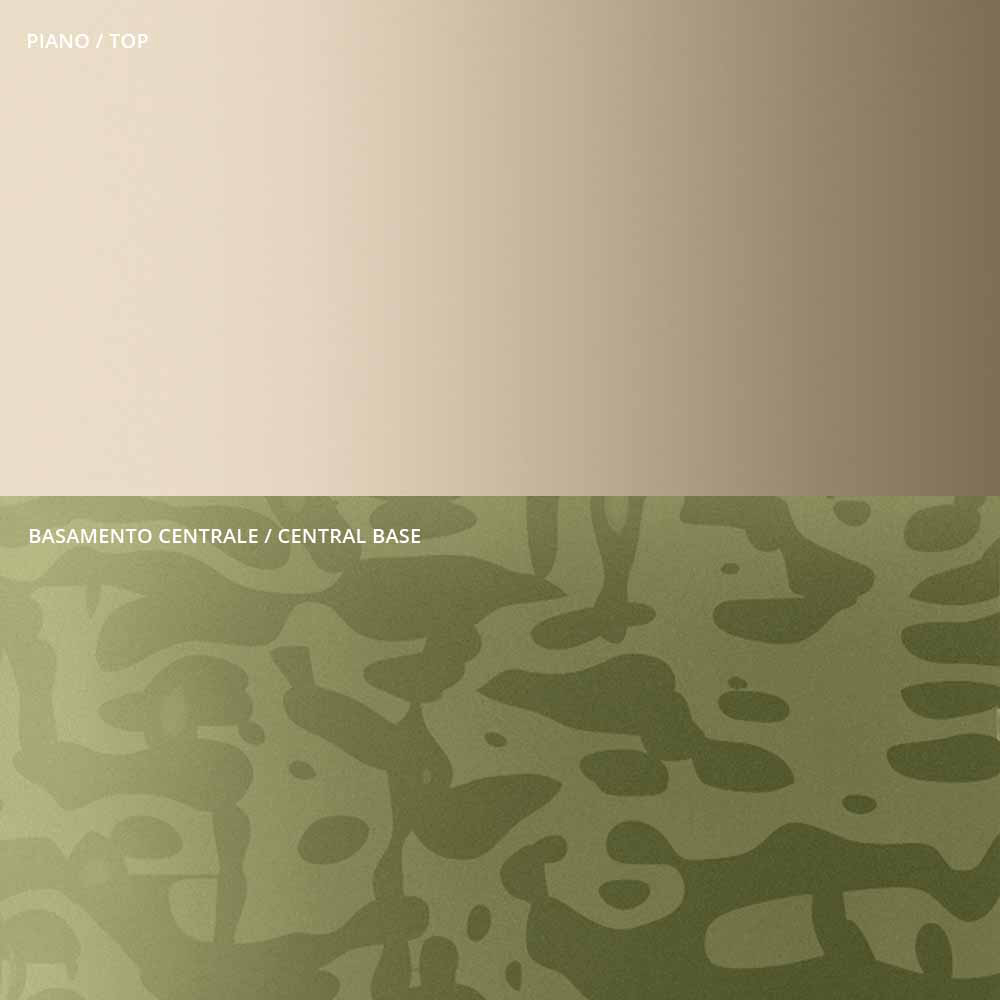 - piano in metallo champagne e base in vetro fuso verde oliva
