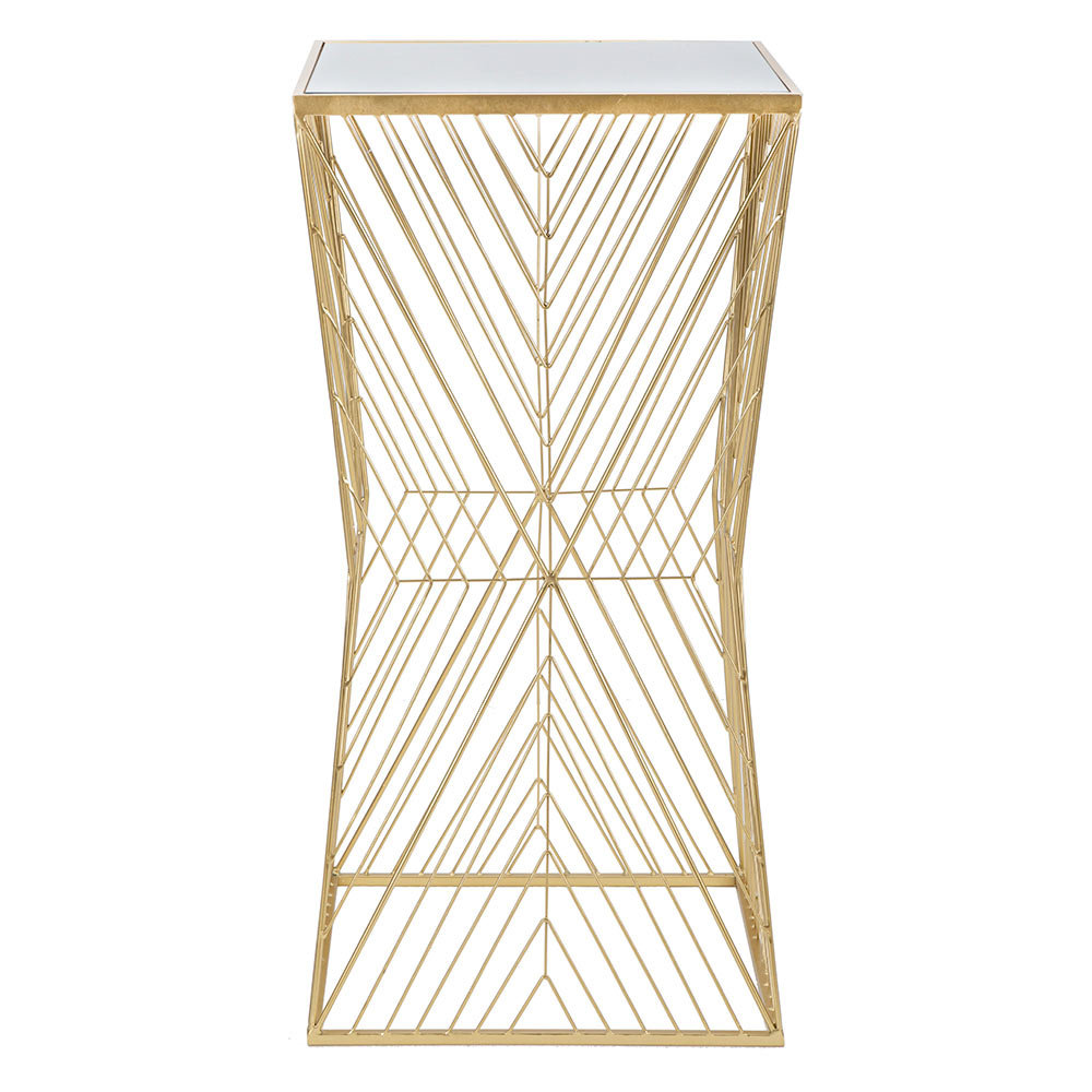 Il piano in vetro, inserito in una cornice dorata, è pratico e facile da pulire, offrendo una superficie ideale per i vostri oggetti decorativi preferiti, da una lampada di design a una pianta lussureggiante. La struttura offre un tocco di brillantezza che può ravvivare qualsiasi stanza, dal soggiorno alla camera da letto, senza eccedere in opulenza.