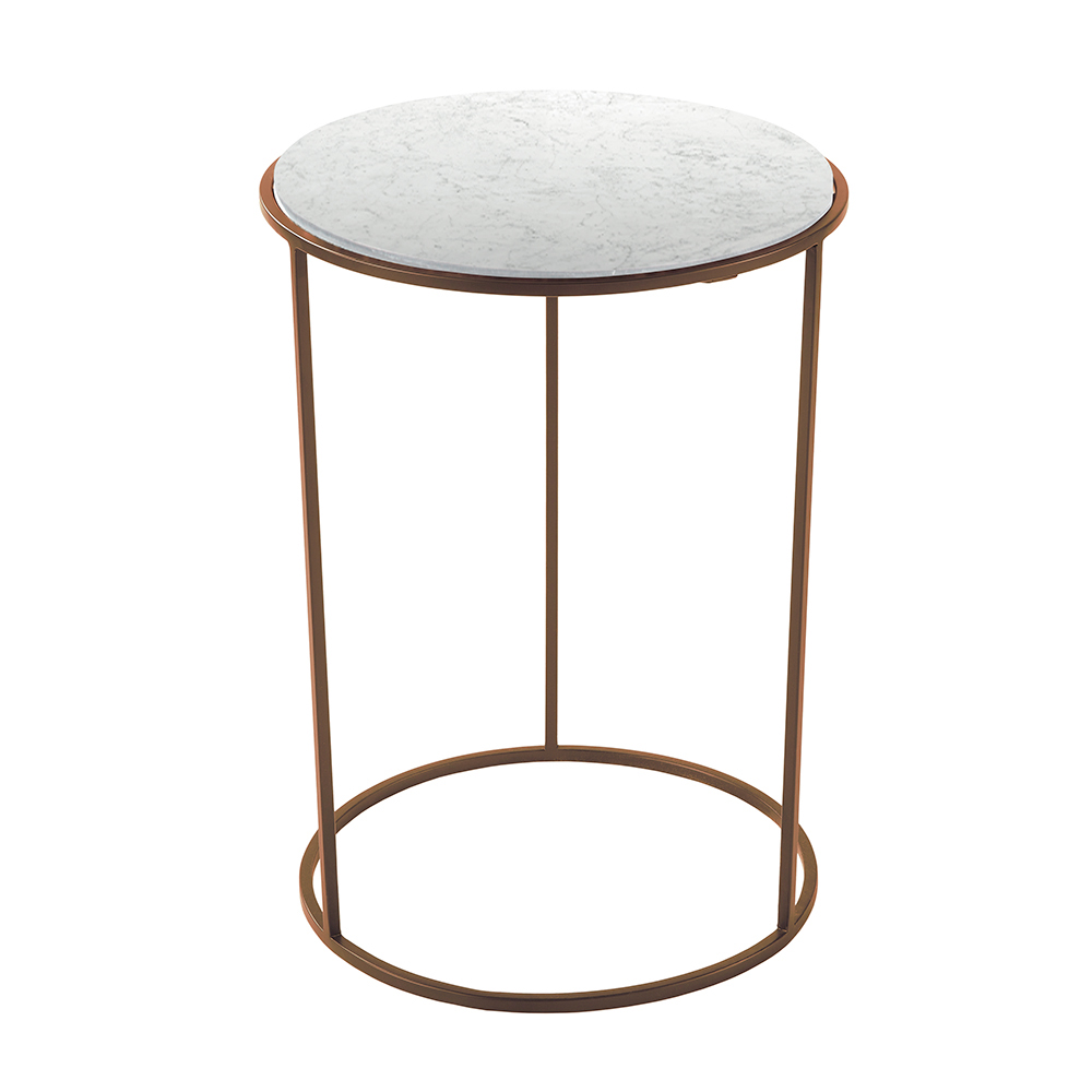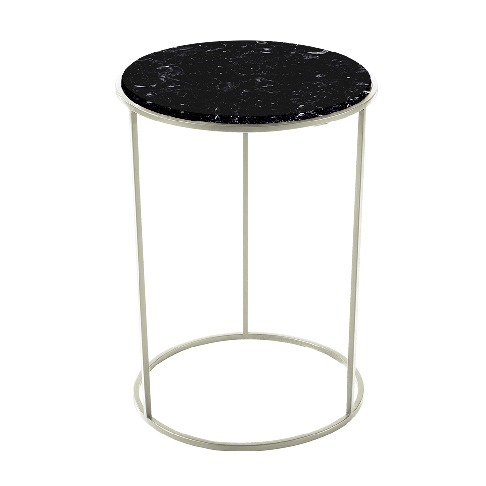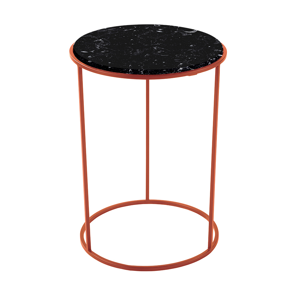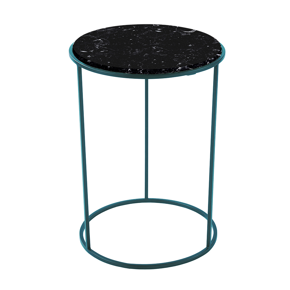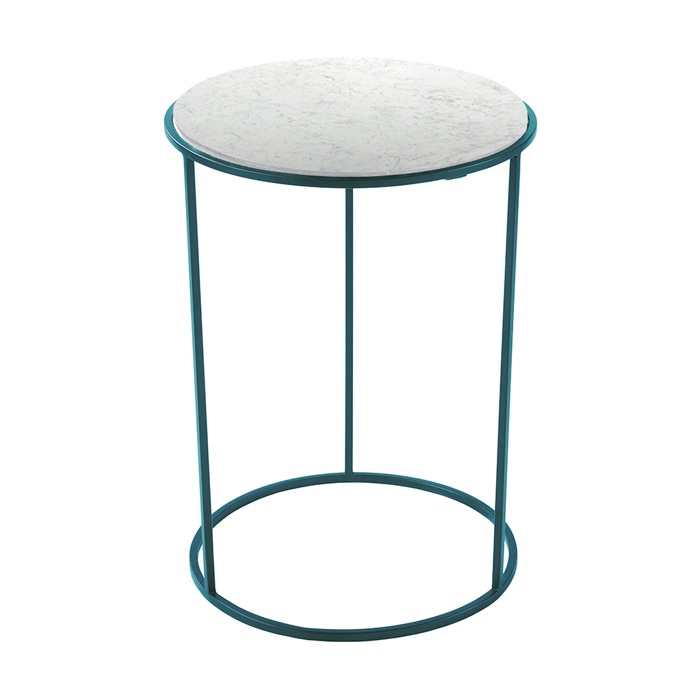 tavolino rotondo con top in marmo opaco, disponibile in tre diverse varianti, presenta linee minimali ed essenziali. Il