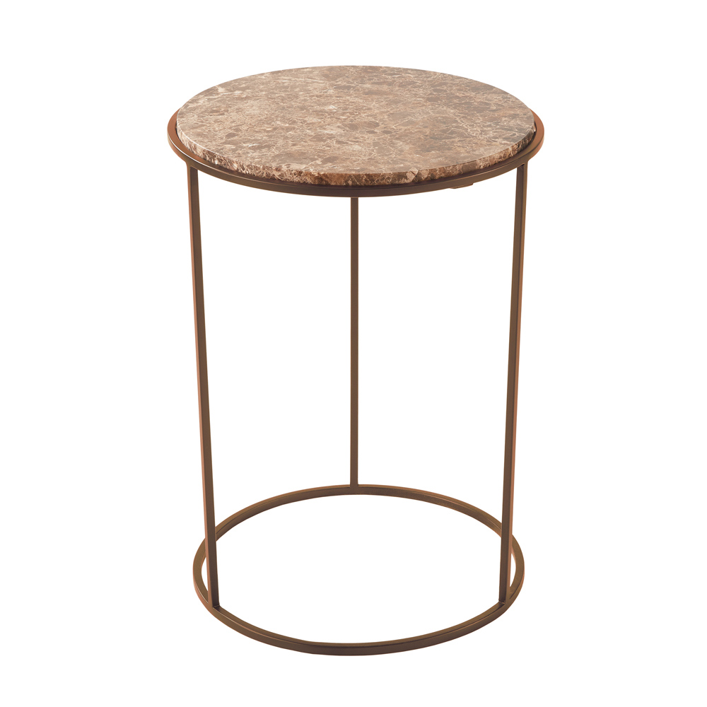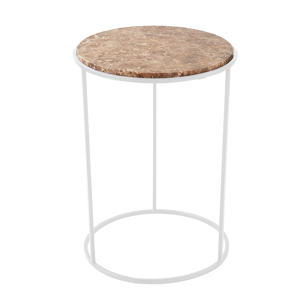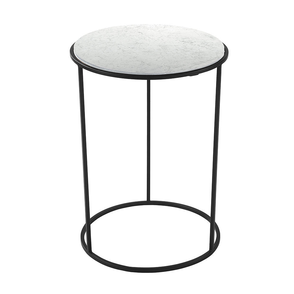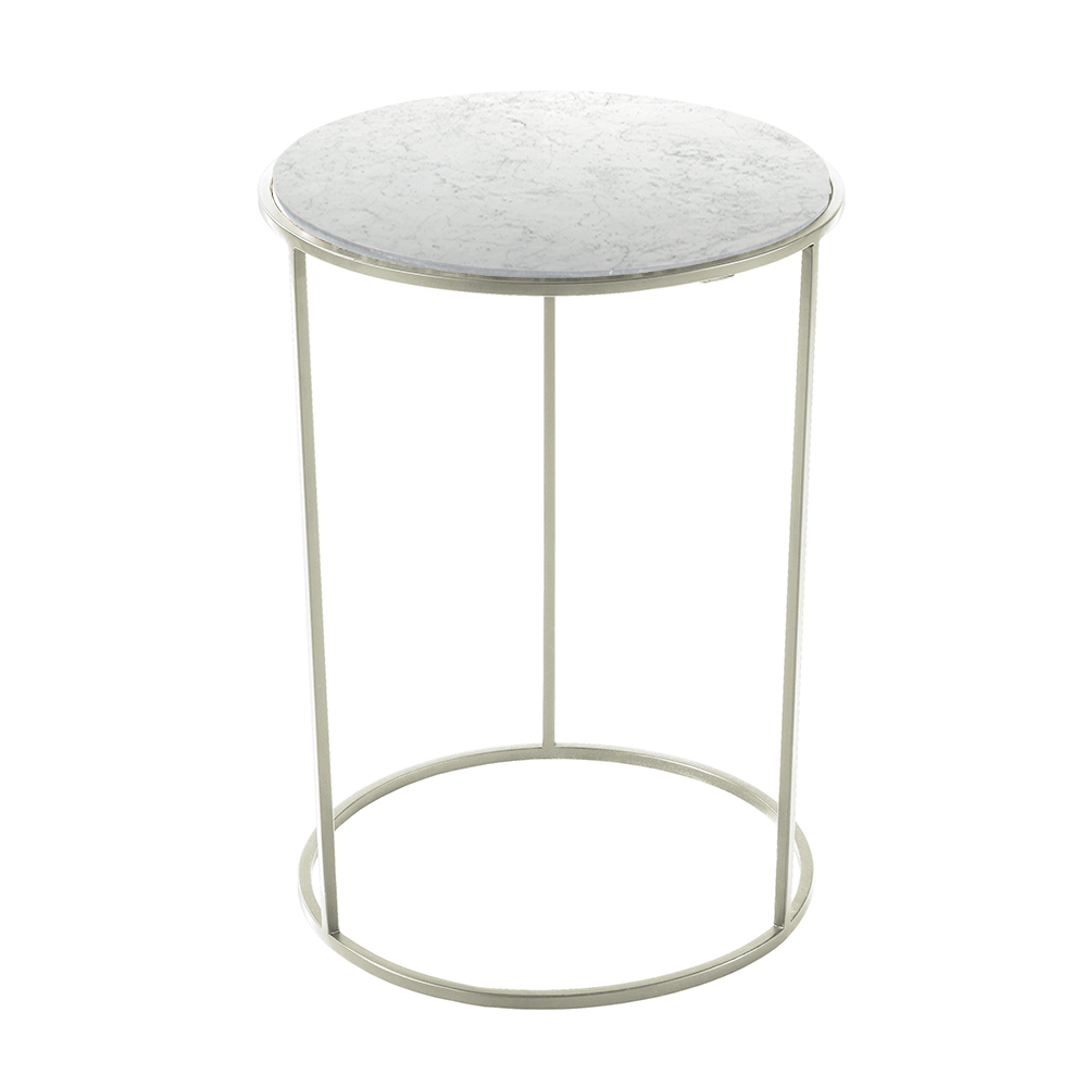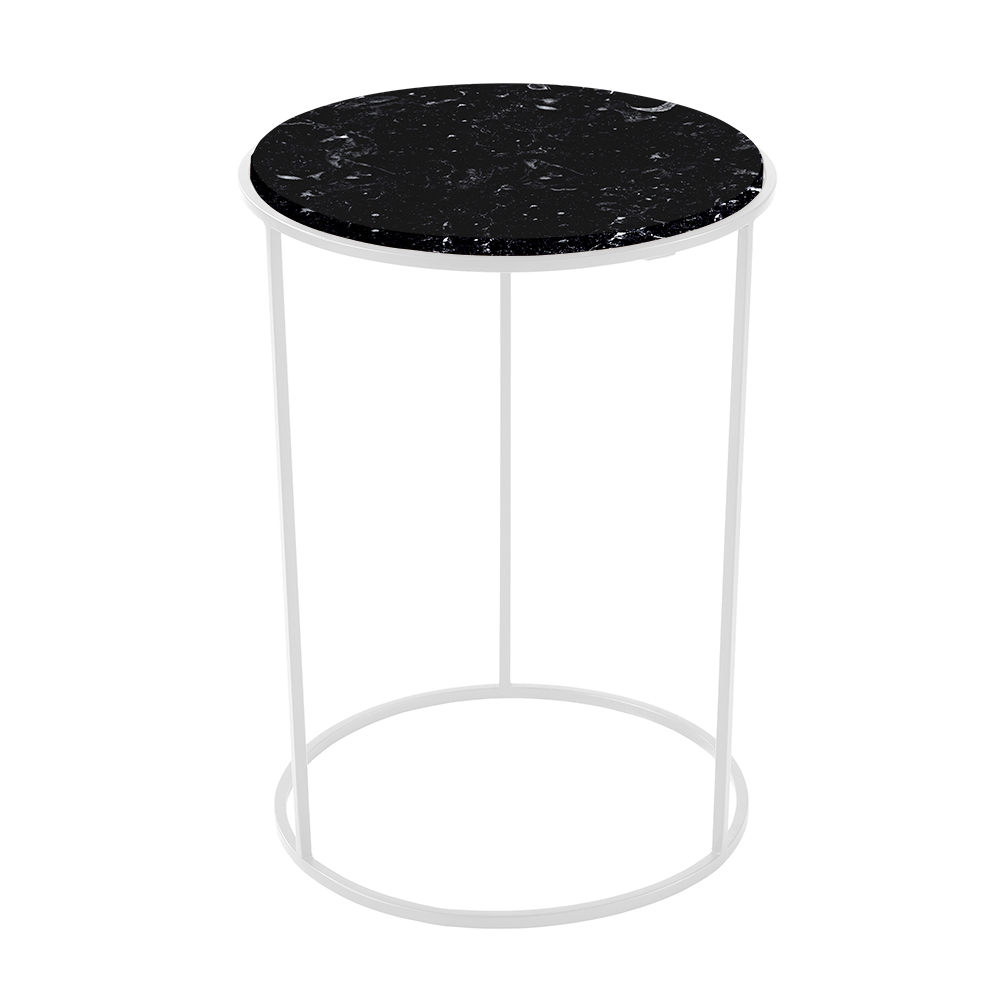 tavolino rotondo con top in marmo opaco, disponibile in tre diverse varianti, presenta linee minimali ed essenziali. Il
