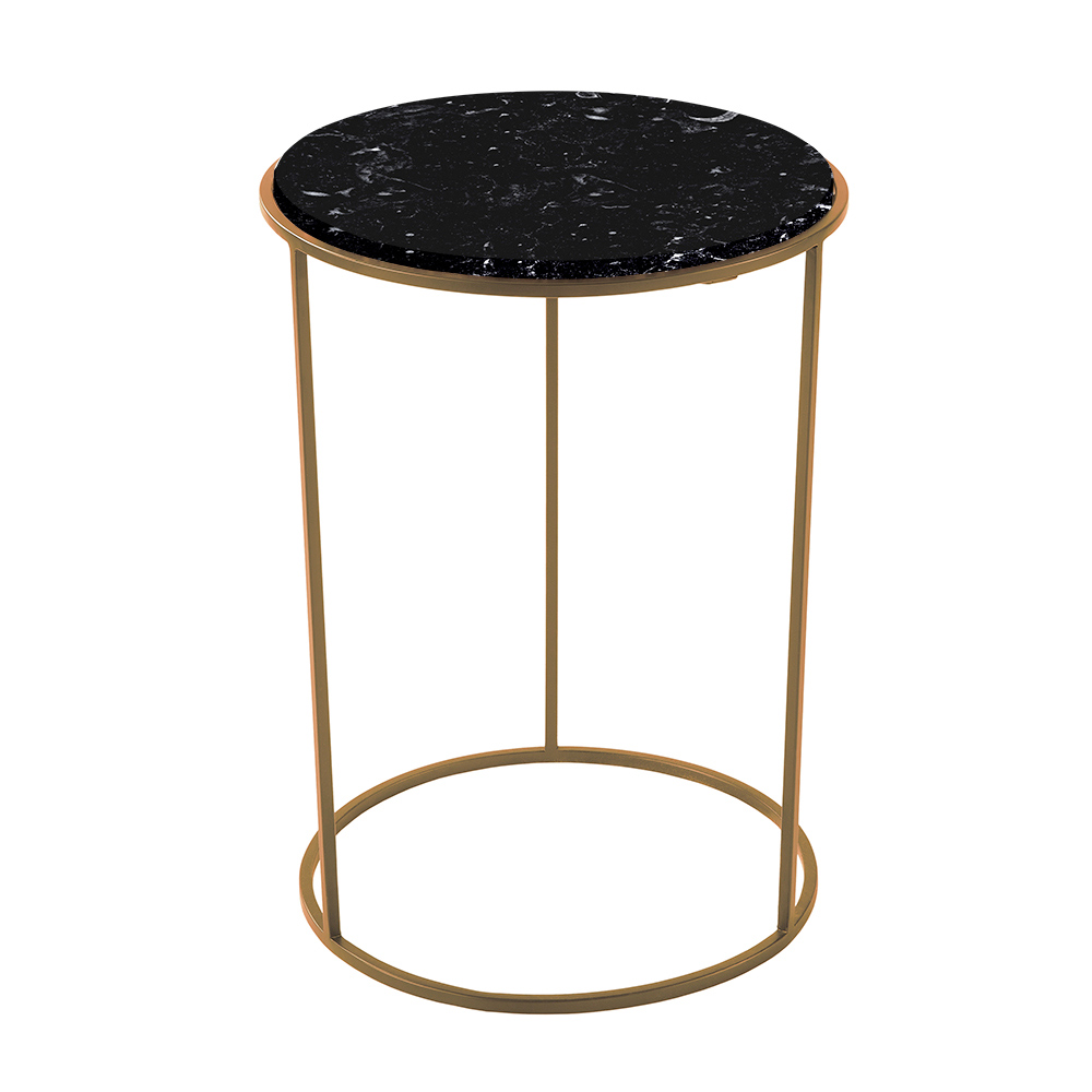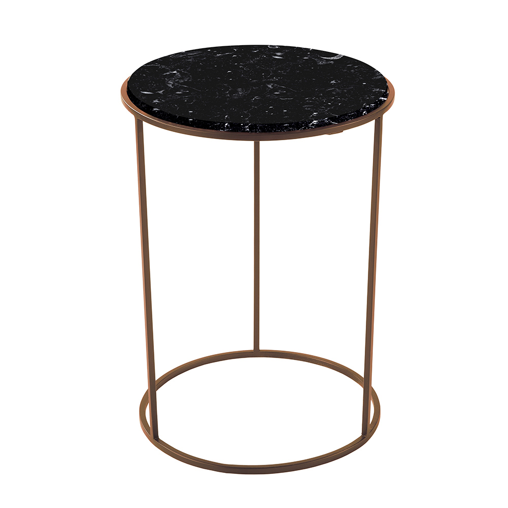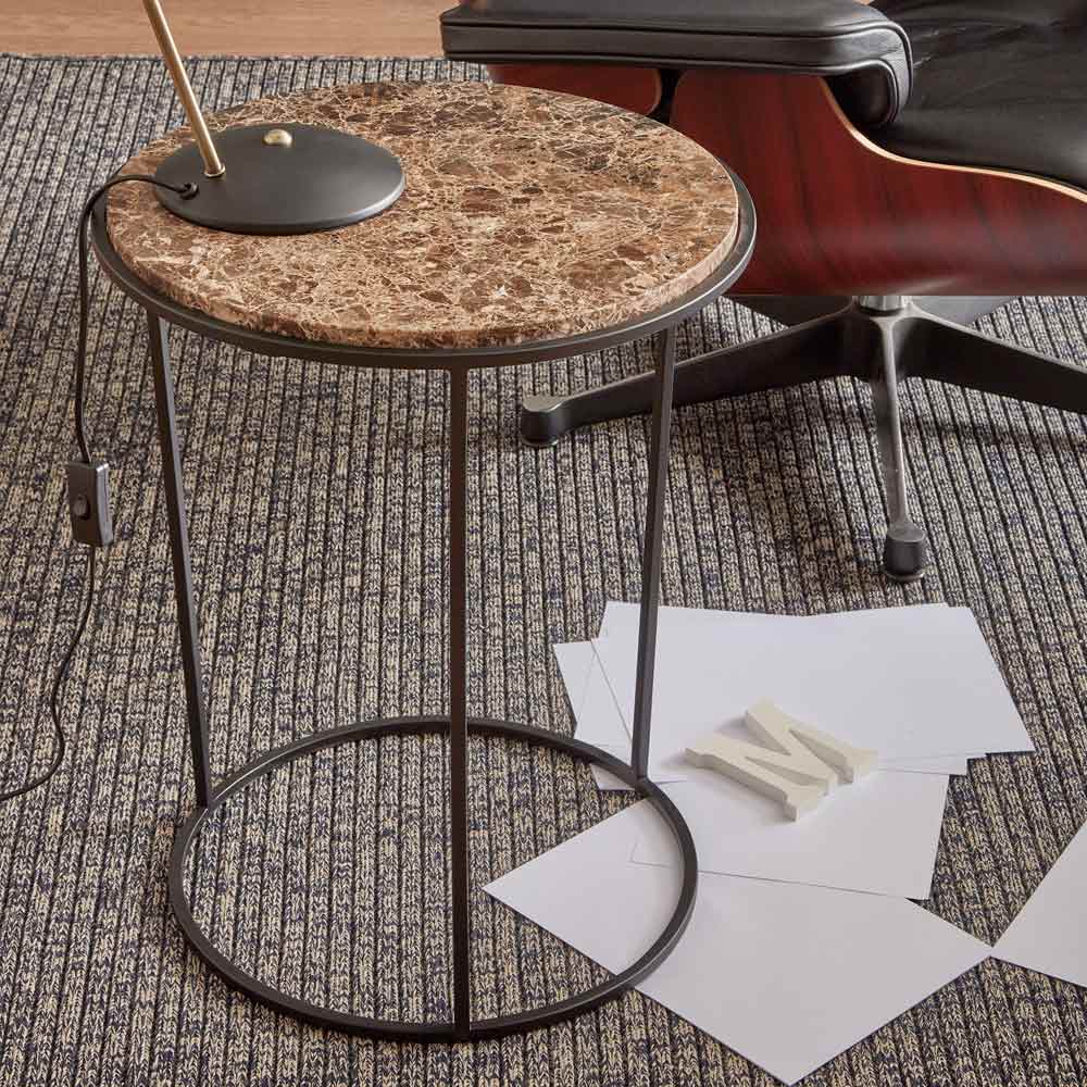 Tavolino da soggiorno rotondo con piano in marmo in 3 finiture e base in metallo, articolo di lusso made in Italy.