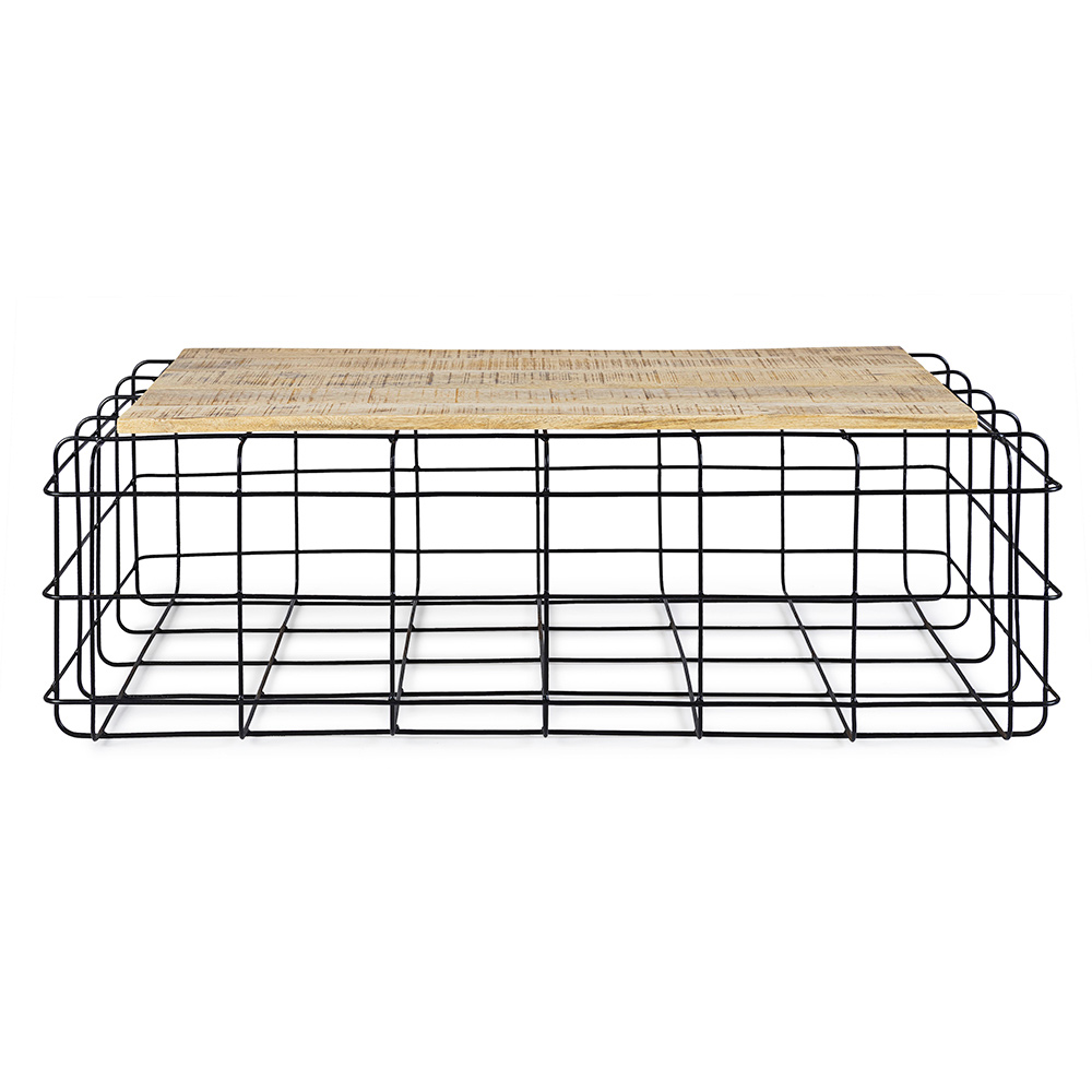 Tavolino rettangolare da caffè in acciaio e legno di mango, design industriale.