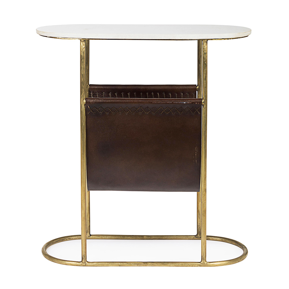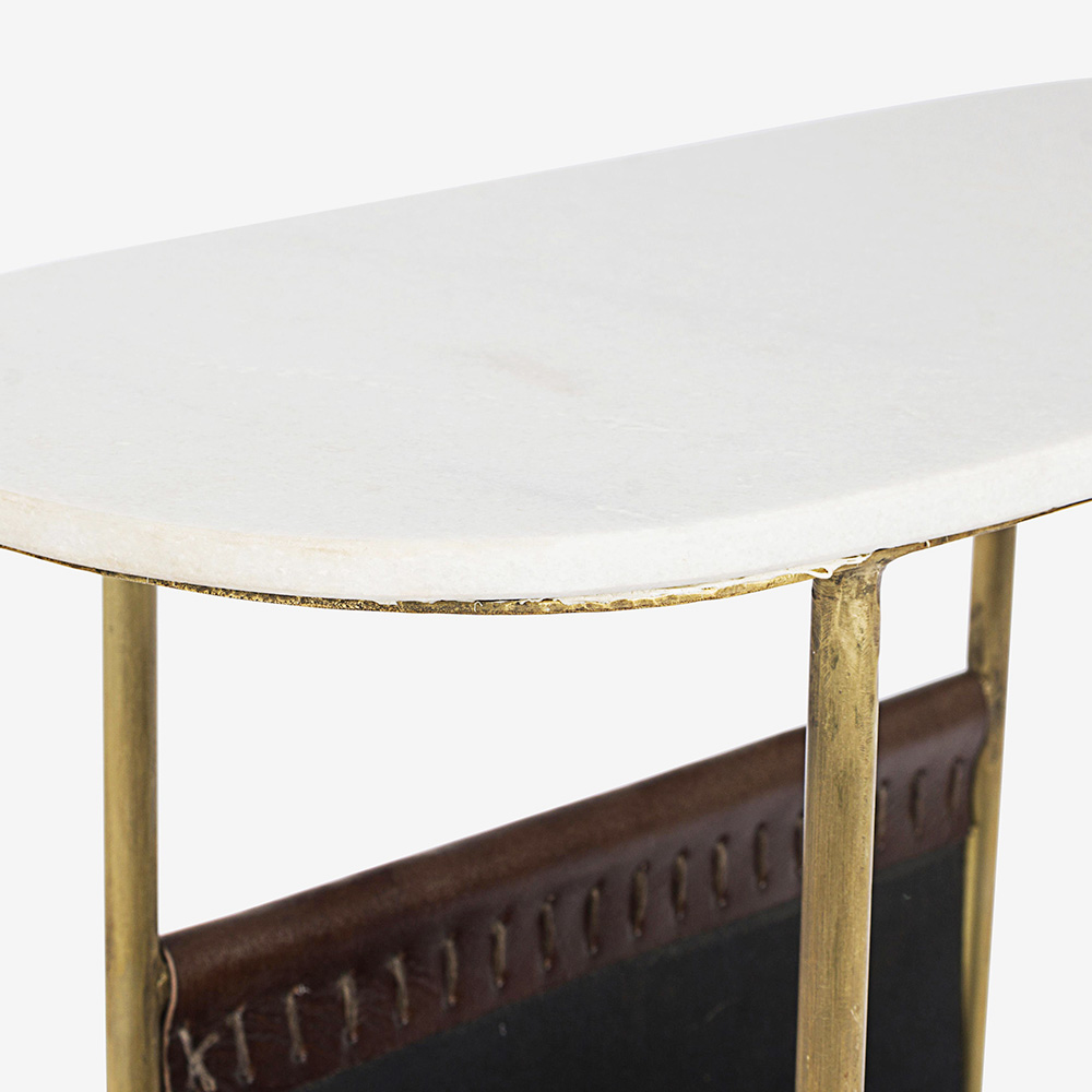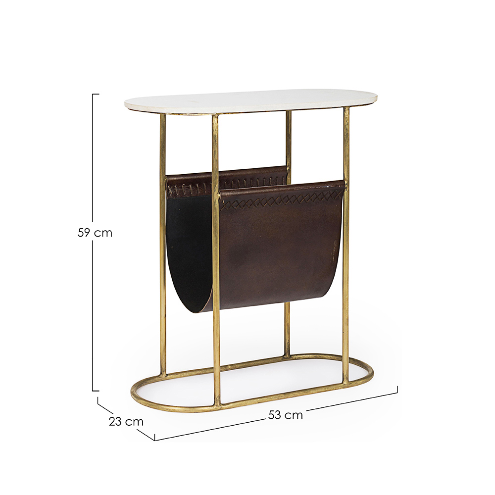 Tavolino da Salotto in Acciaio e Marmo con Portariviste in Pelle - Aretone
