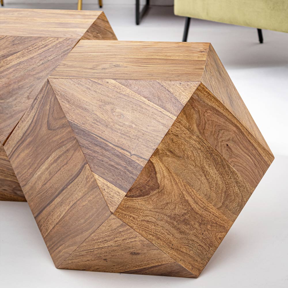 Tavolino per il salotto dal design poligonale in legno sheesham.