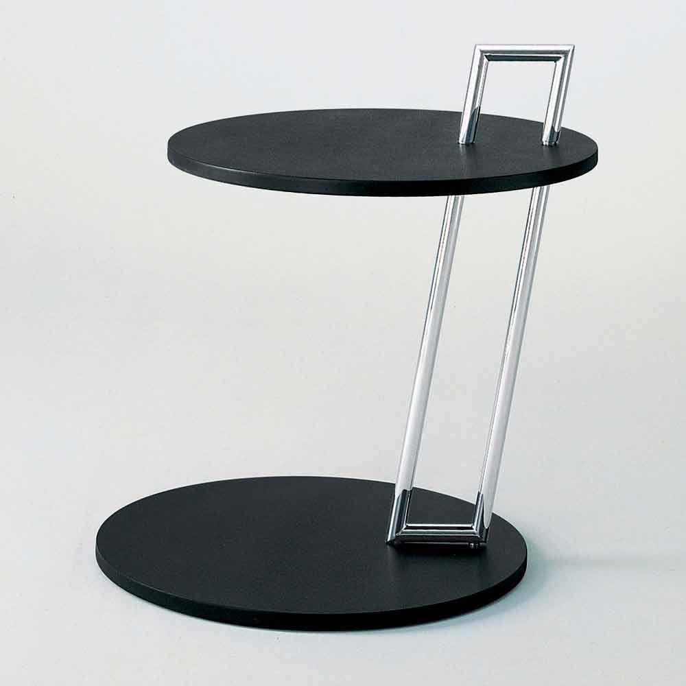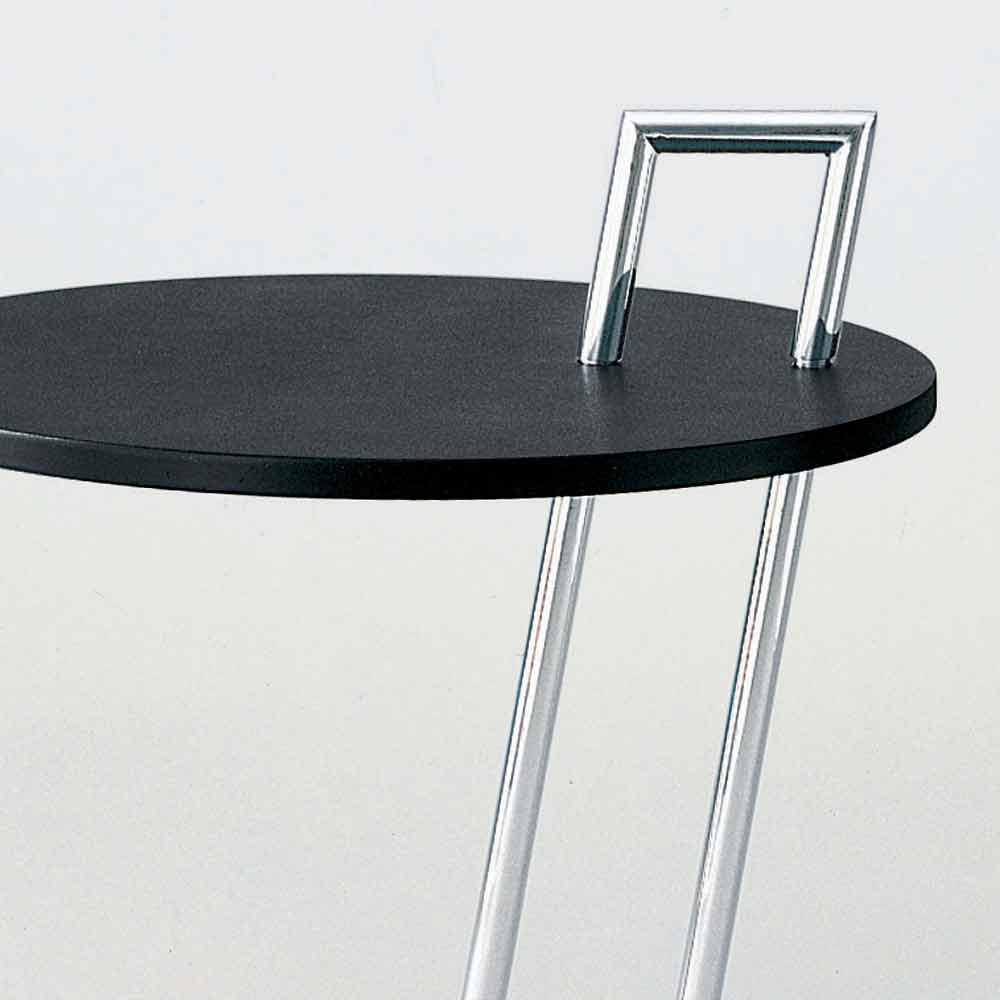 Tavolino da salotto rotondo in mdf e acciaio cromato Made in Italy.