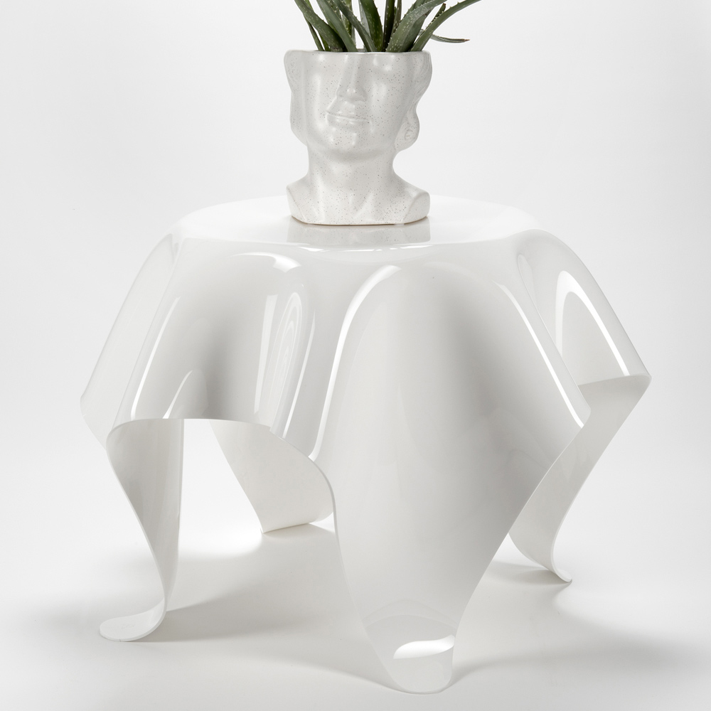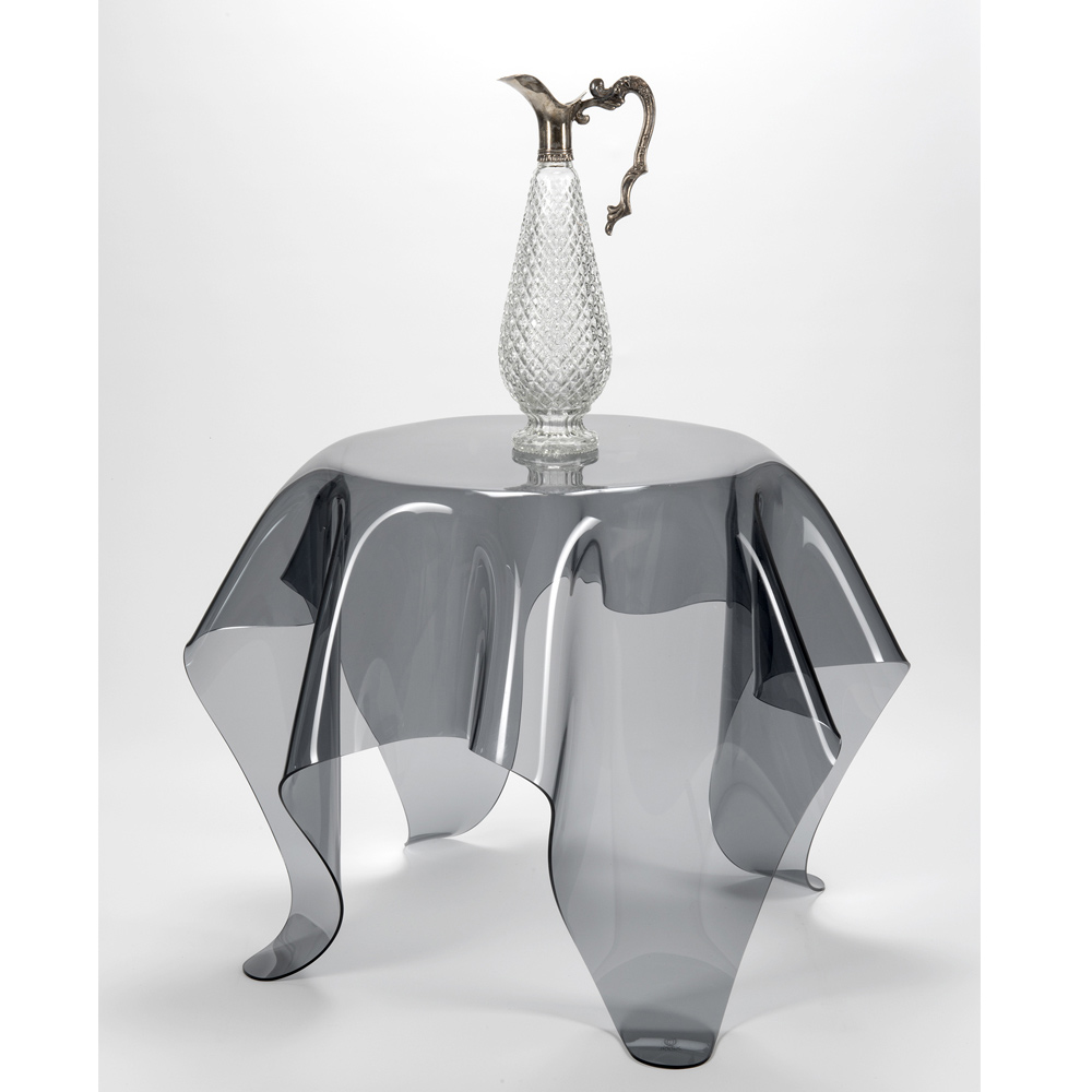 Tavolino da salotto in plexiglass con drappeggi fatti a mano Made in Italy.