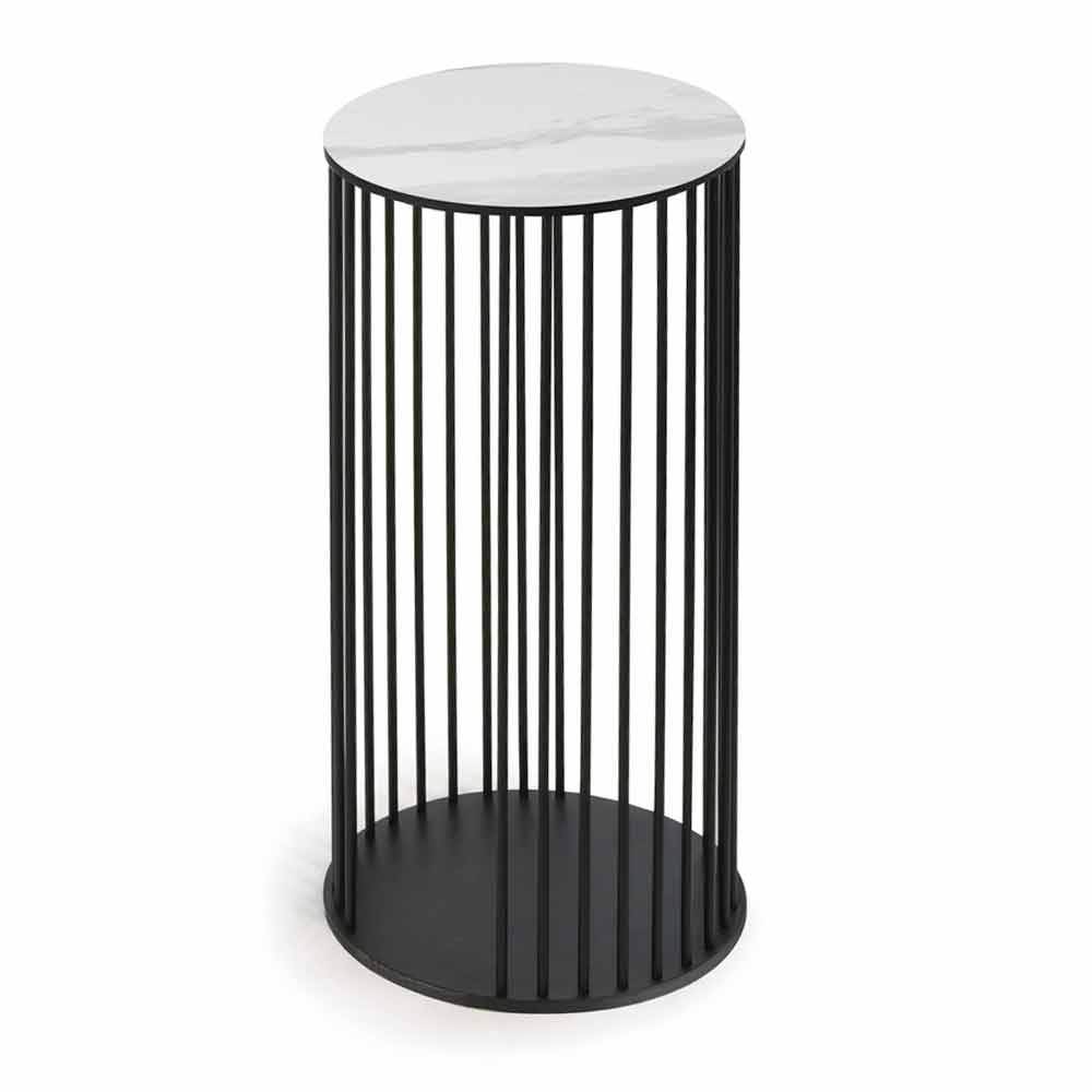 Tavolino da salotto in ceramica e metallo verniciato Made in Italy.