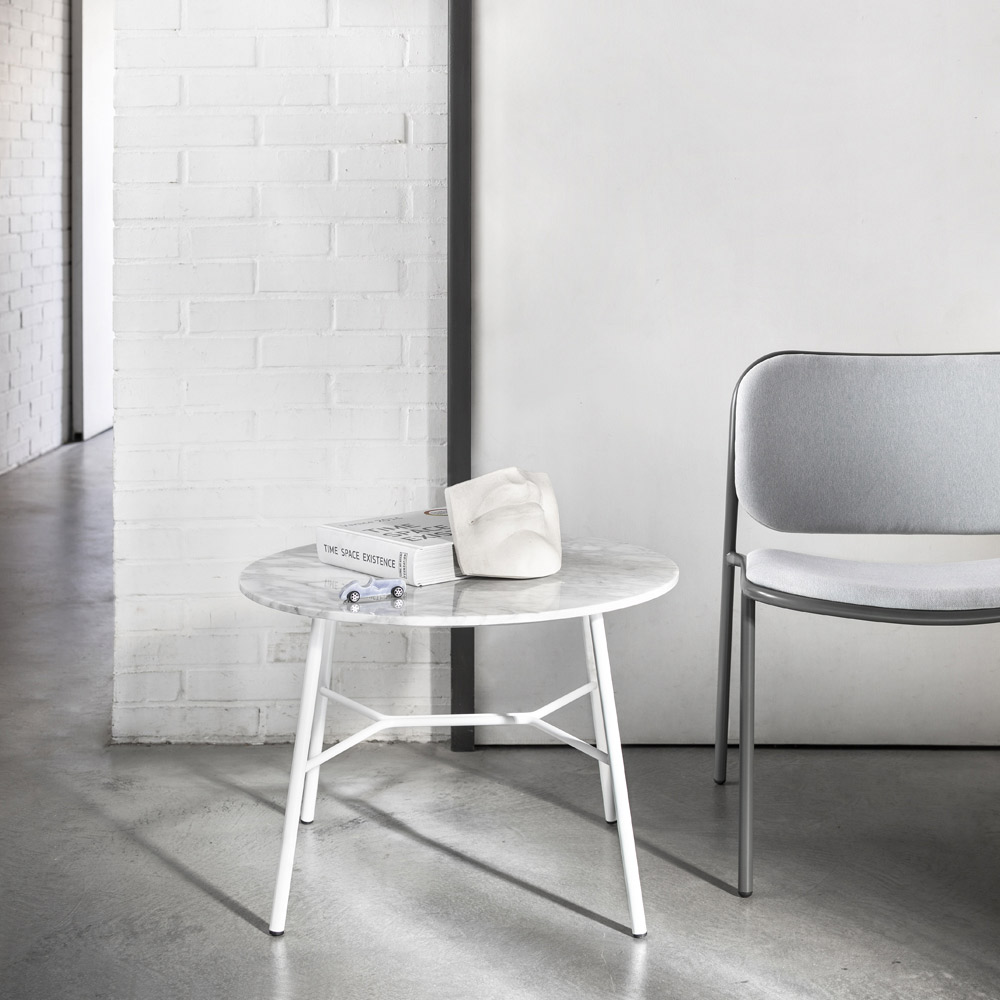 forme semplici e minimali tutta l'eleganza del marmo e la modernità della base metallica creando una soluzione d'arredo capace di conquistare il centro dell'attenzione grazie alla sua