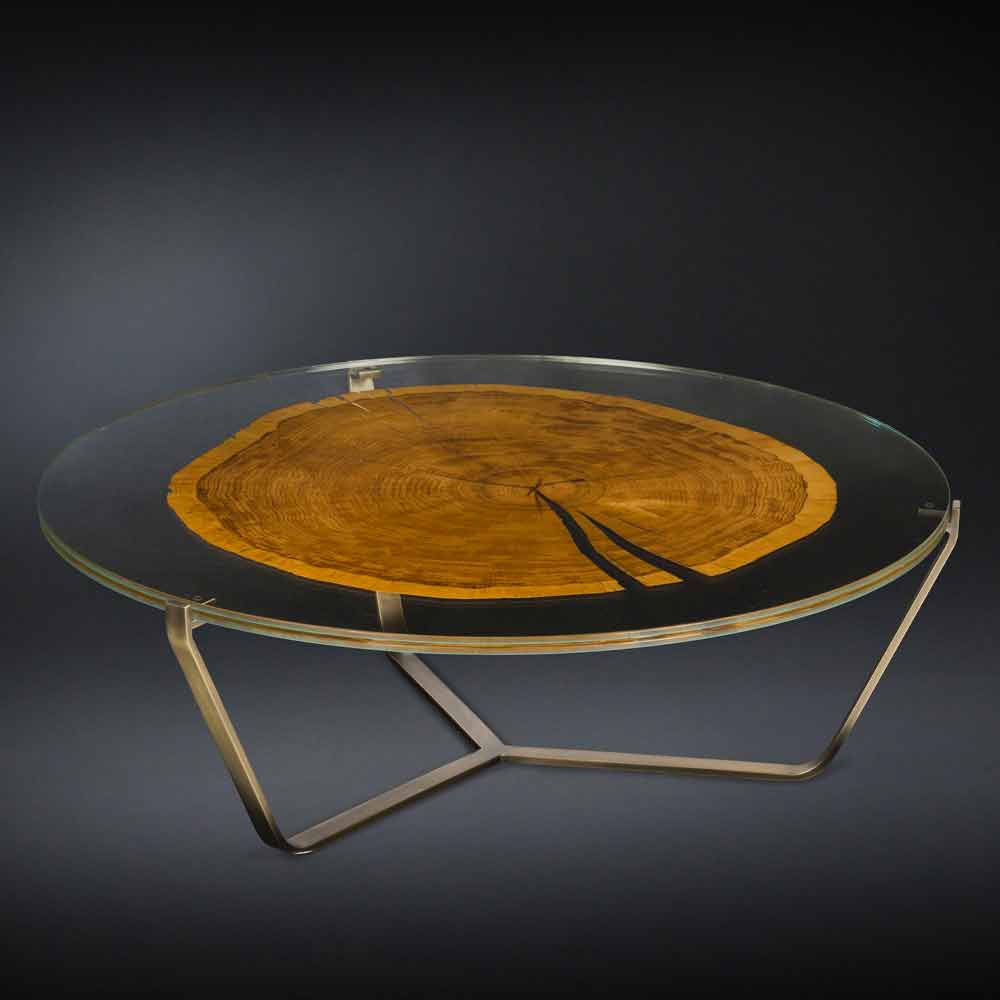 Tavolino da caffè realizzato interamente in Italia con piano rotondo in