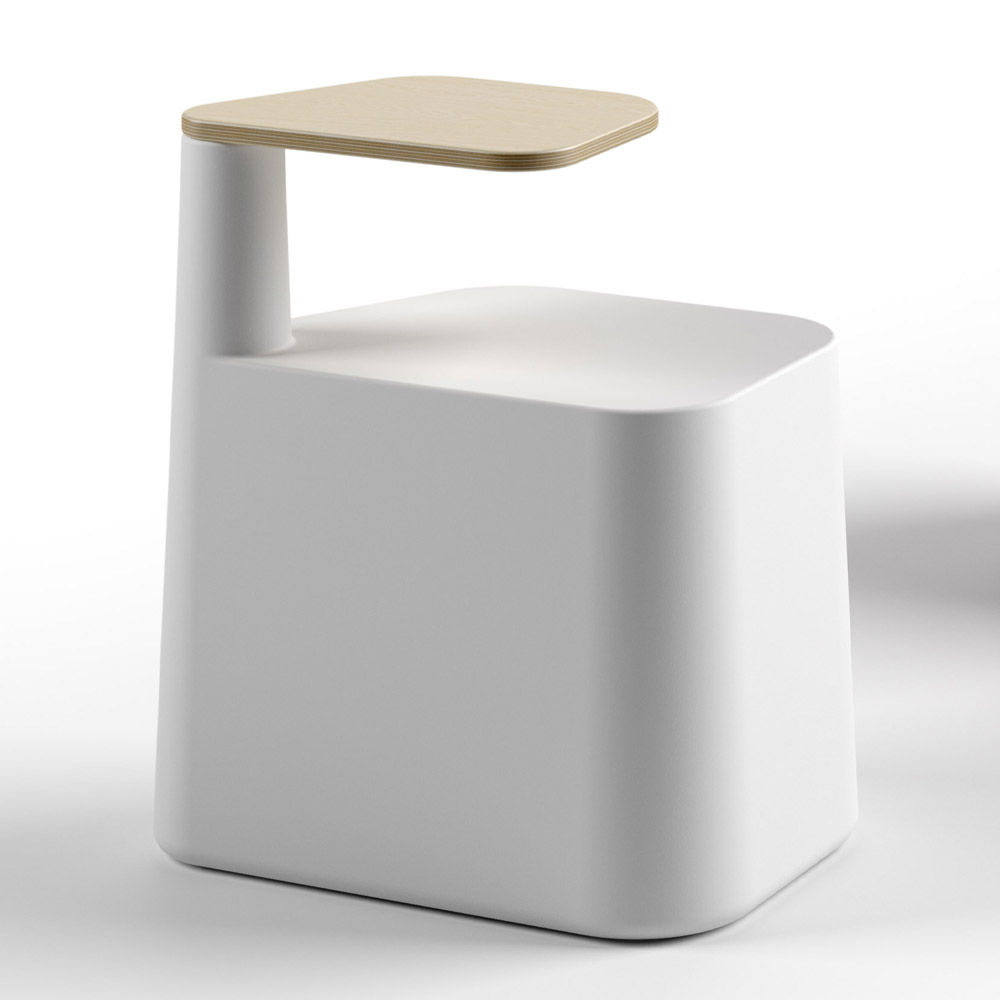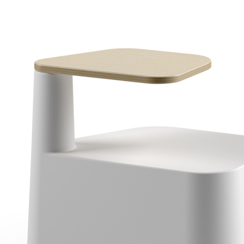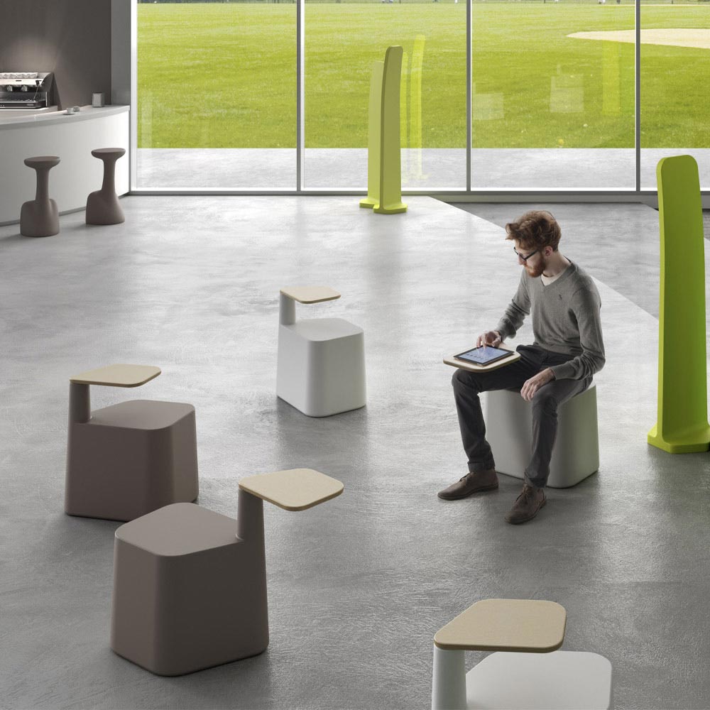 funzionalità e praticità per offrire un piano d'appoggio intelligente ideale per brevi soste in ambienti pubblici di grande passaggio come ad esempio bar, aree relax e spazi quali sale studio, aree meeting, biblioteche. La sua estetica è scandita da