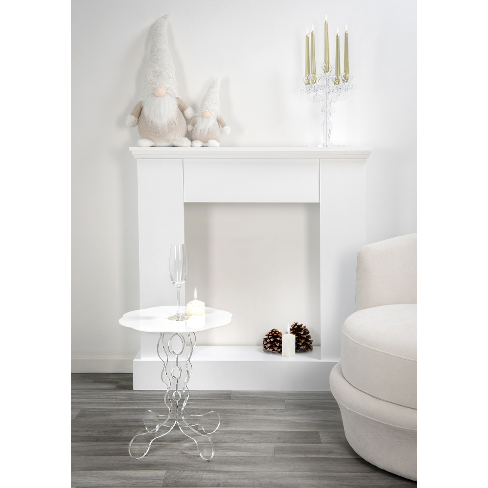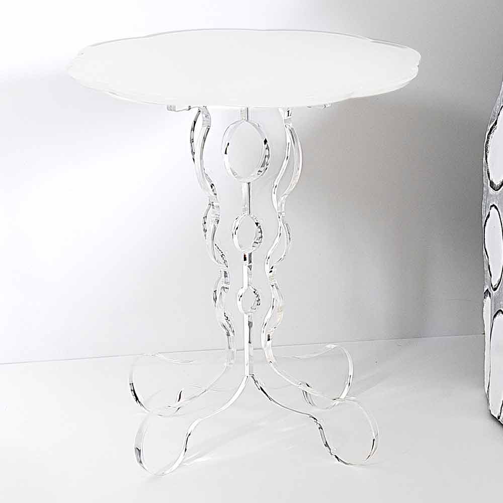 Tavolino tondo bianco diametro 36cm design moderno Janis,made in Italy