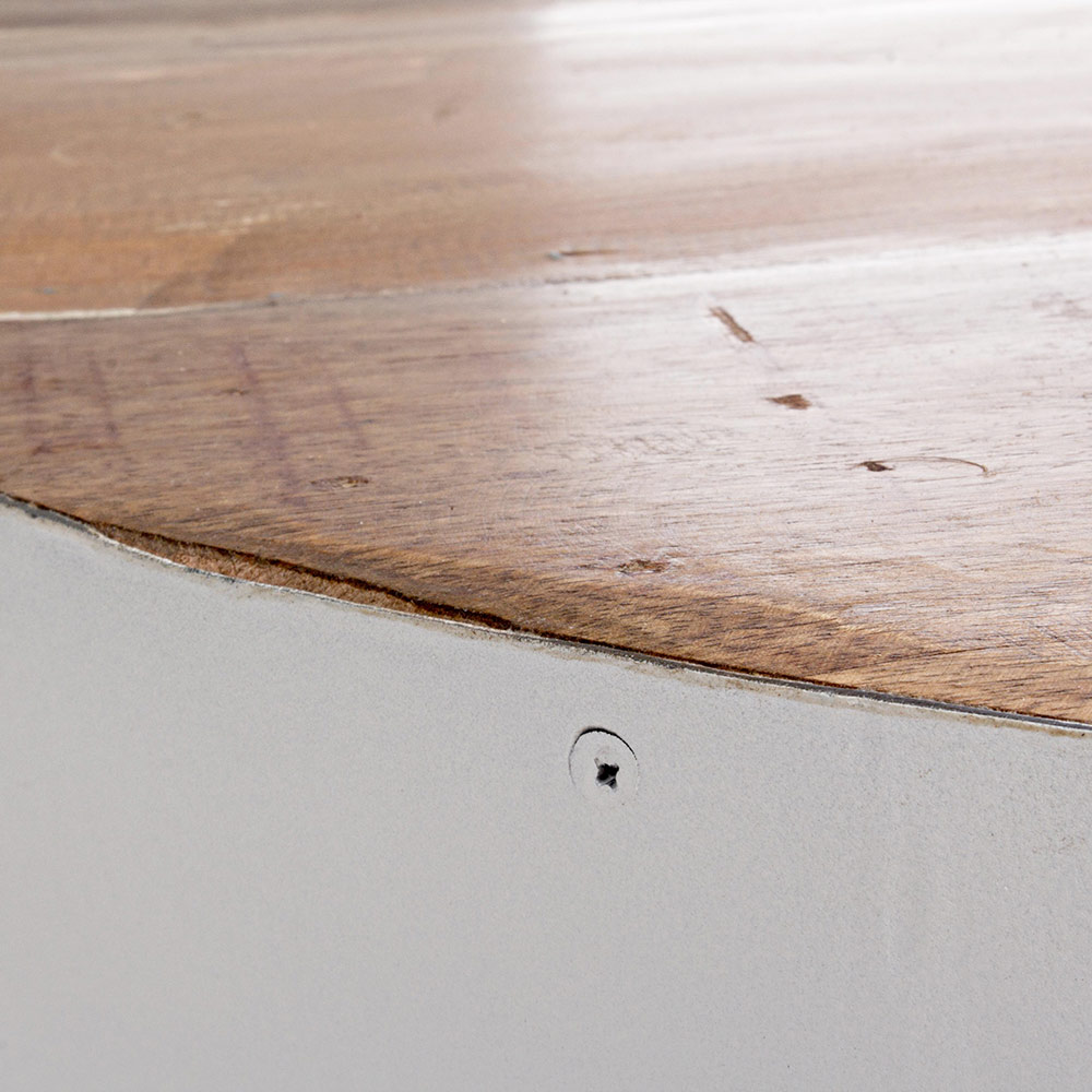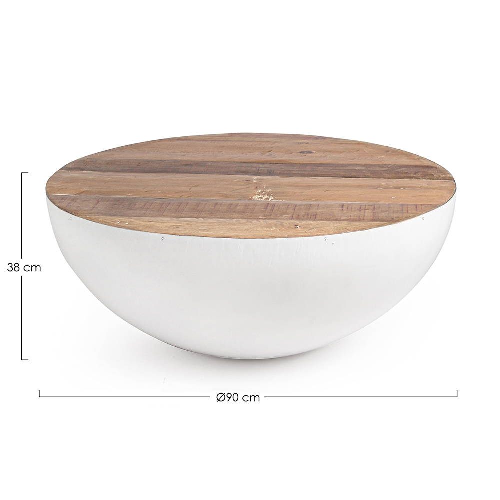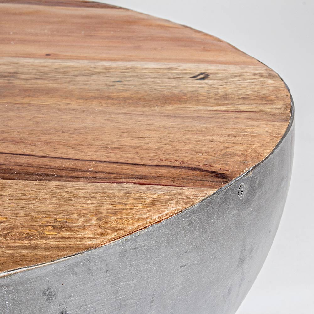 Tavolino tondo da caffè in legno e acciaio riciclati, 2 colori e 2 misure.