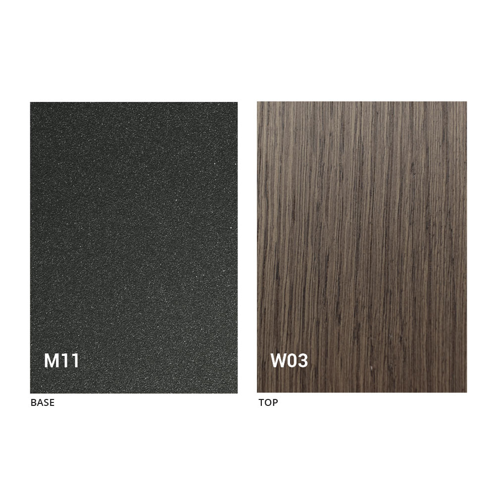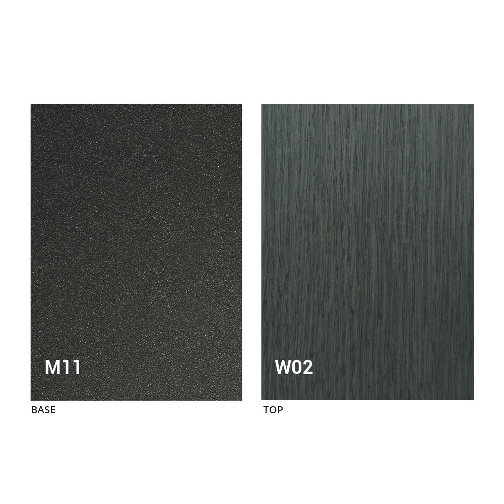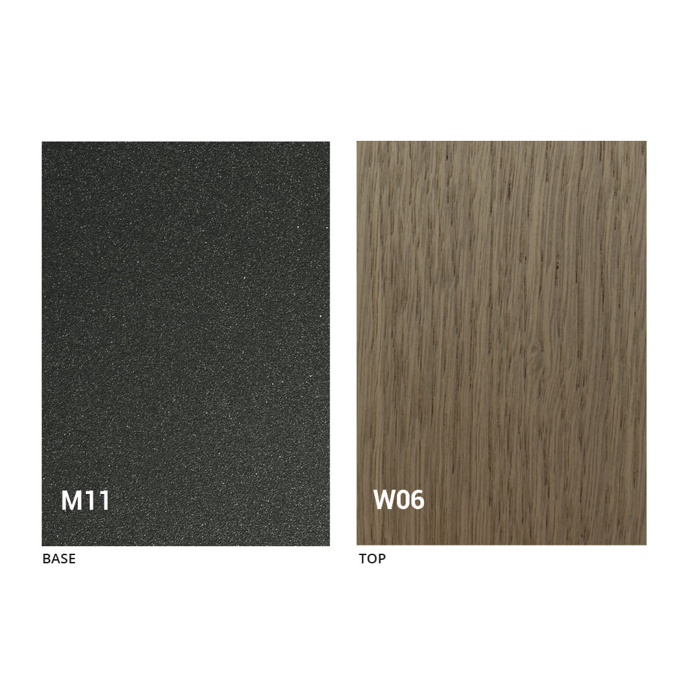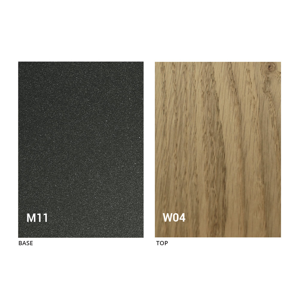 Il piano e la base del tavolo possono essere personalizzati con diverse finiture a campione. Per informazioni contattaci tramite l'apposito form "