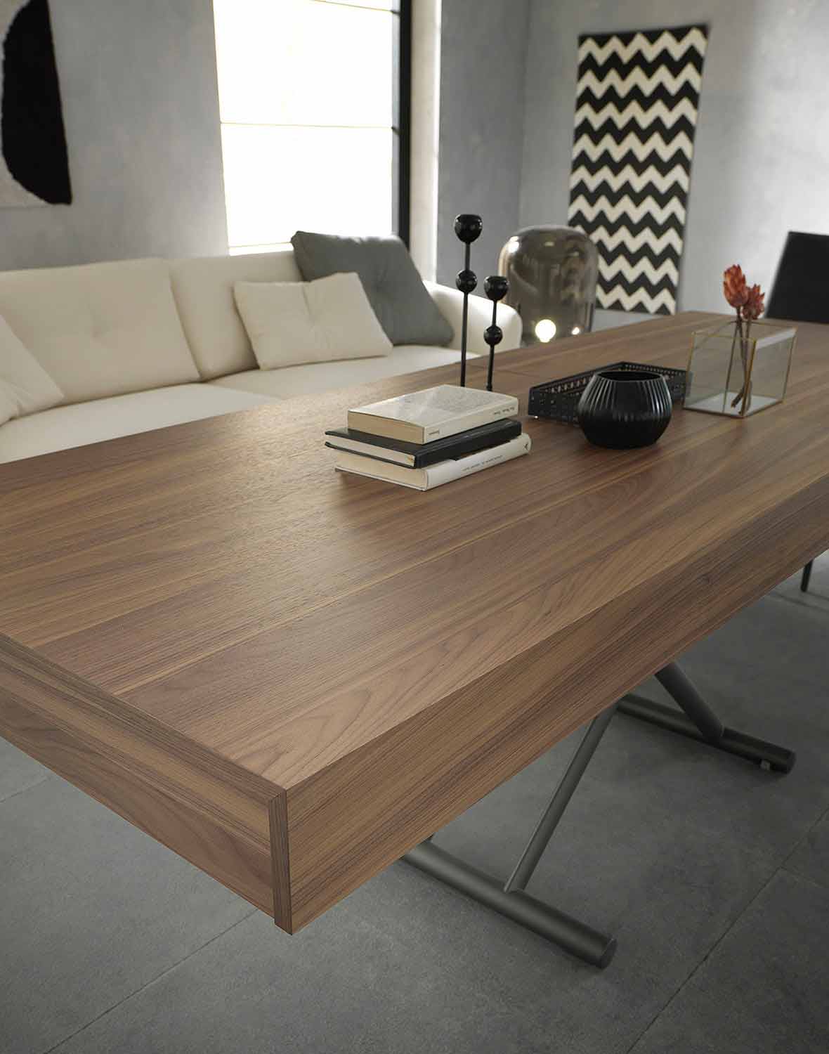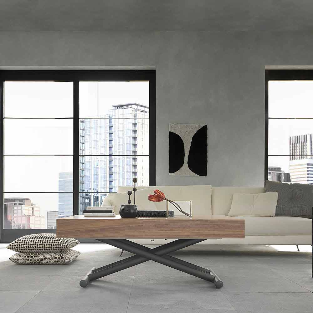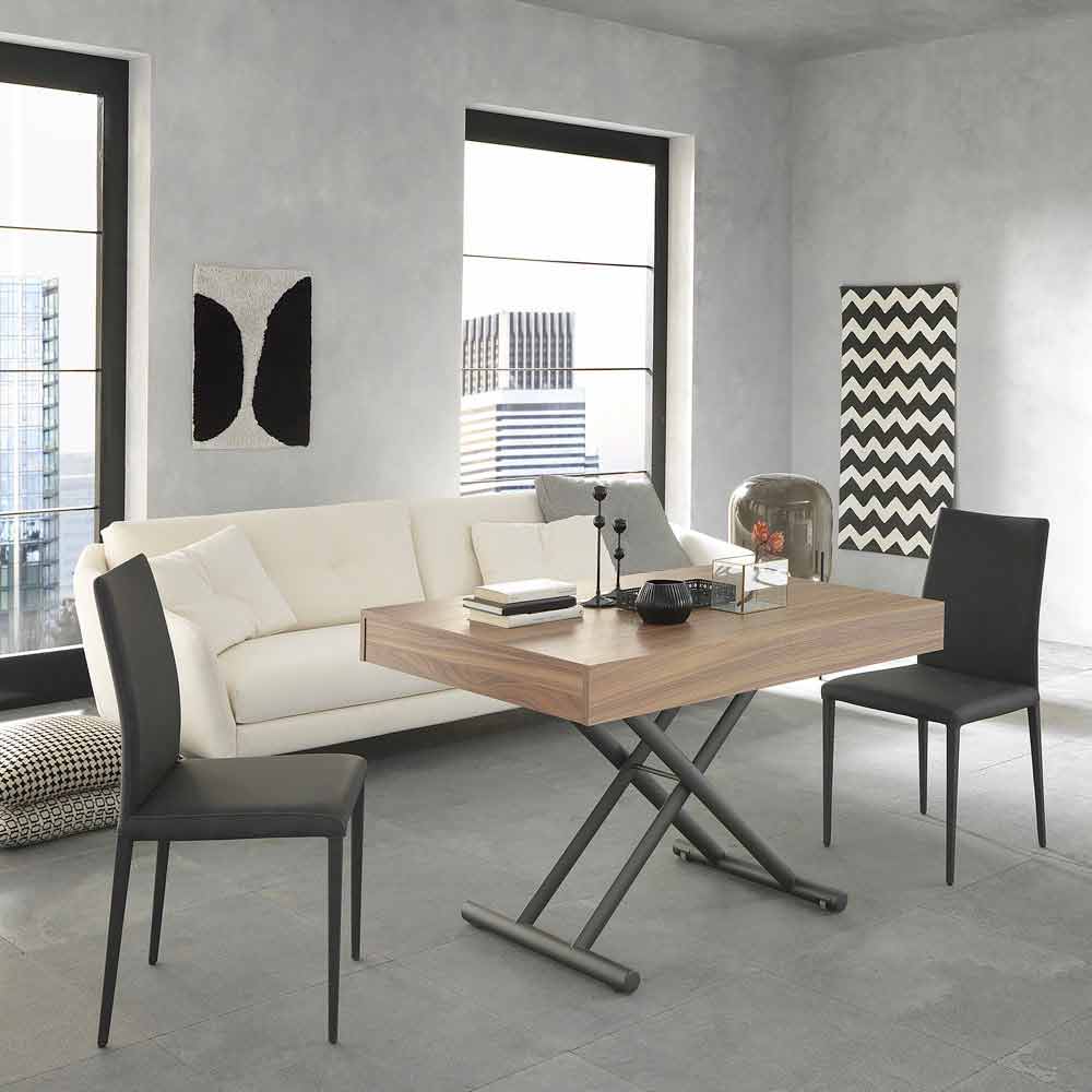tavolino trasformabile è caratterizzato da linee eleganti ed essenziali che accompagnano un design versatile adatto per arredare qualsiasi stile d'ambiente.