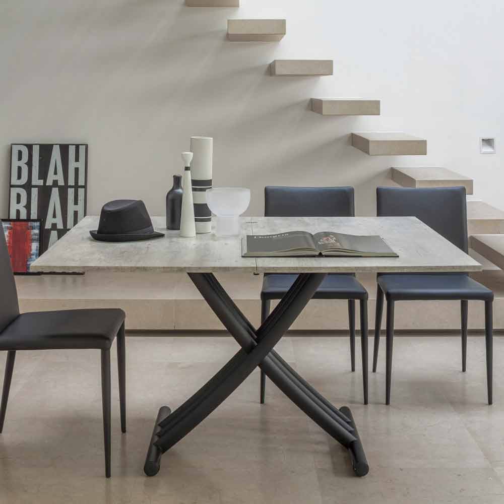 Tavolino da salotto trasformabile da pranzo in metallo e piano in legno made in Italy.