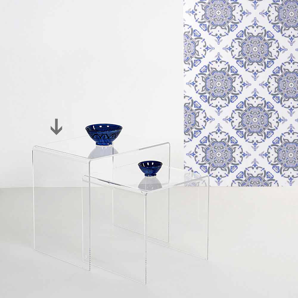 Tavolino trasparente design moderno 50x50cm Terry Big, made in Italy