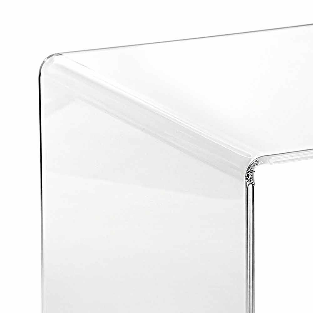 Versatile tavolinetto/comodino trasparente, ispirato alle geometrie degli anni ’80, in plexiglass PMMA da polimero vergine 100%, tagliato al laser e piegato ad alte temperature. L’importante spessore rende la struttura totalmente autoportante. È vendibile singolarmente ma è perfetto se abbinato al gemellino TERRY SMALL. Il plexiglass è antiurto, indeformabile, inalterabile e termoisolante. La luminosità e la brillantezza si mantengono costanti ed inalterati nel tempo. Il plexiglass PMMA da polimero vergine utilizzato da è atossico, ipoallergico, inodore ed antibatterico. Riciclabile 100%. Pensato, progettato e realizzato in Italia, con materiali italiani.