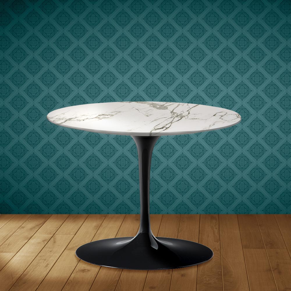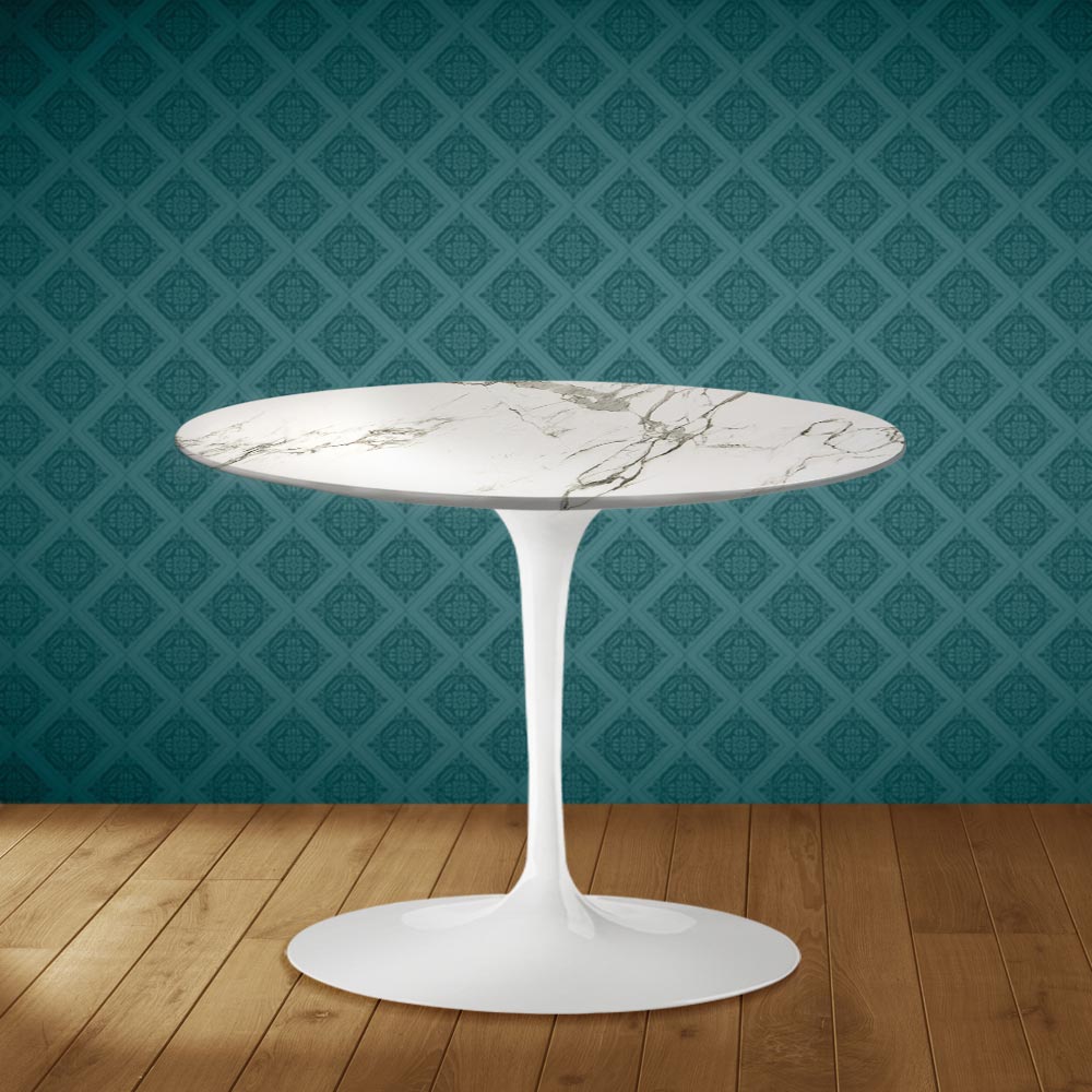 Tavolino da salotto con piano rotondo in ceramica aura 22, effetto marmo carrara statuario opaco, e basamento in alluminio lucido interamente realizzato in Italia. Questo complemento d'arredo, grazie alle sue finiture semplici e raffinate, può essere inserito in ambiente living arredati in stili diversi. La caratteristica principale che lo contraddistingue da prodotti simili è imateriale depiano, la ceramica aura 22, un'eccellente alleata per rendere l'ambiente più accogliente e piacevole grazie alla sua pregiatissima grafica. Inoltrre l'unione tra la ceramica e l'alluminio lucido crea un connubio perfetto che rende questo tavolino adatto a tutte le occasioni d'uso.