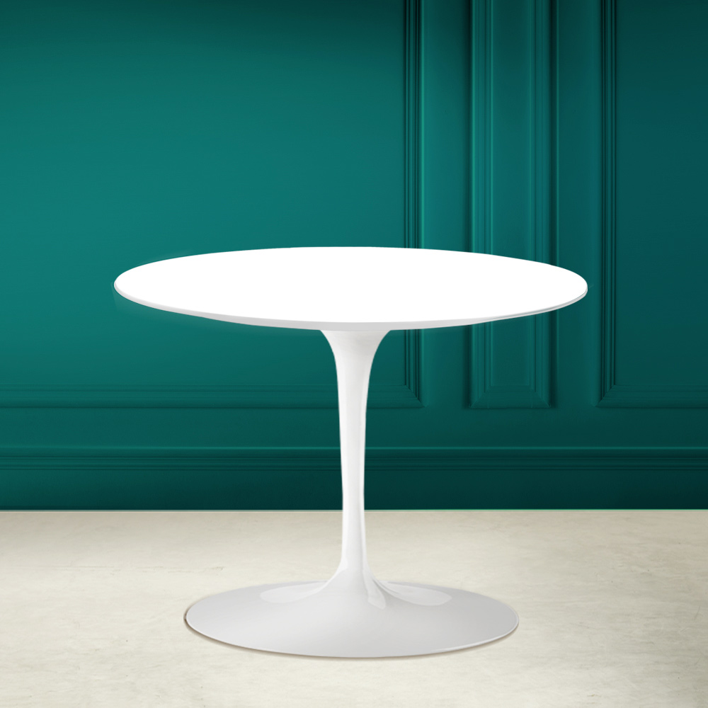 Tavolino da salotto rotondo in ceramica bianco assoluto Made in Italy
