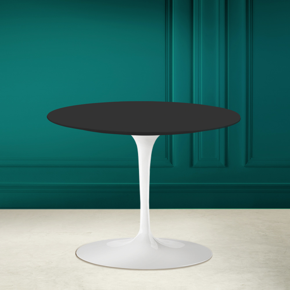 Tavolino da salotto rotondo con piano in ceramica Nero soft e base in alluminio lucido Made in Italy
