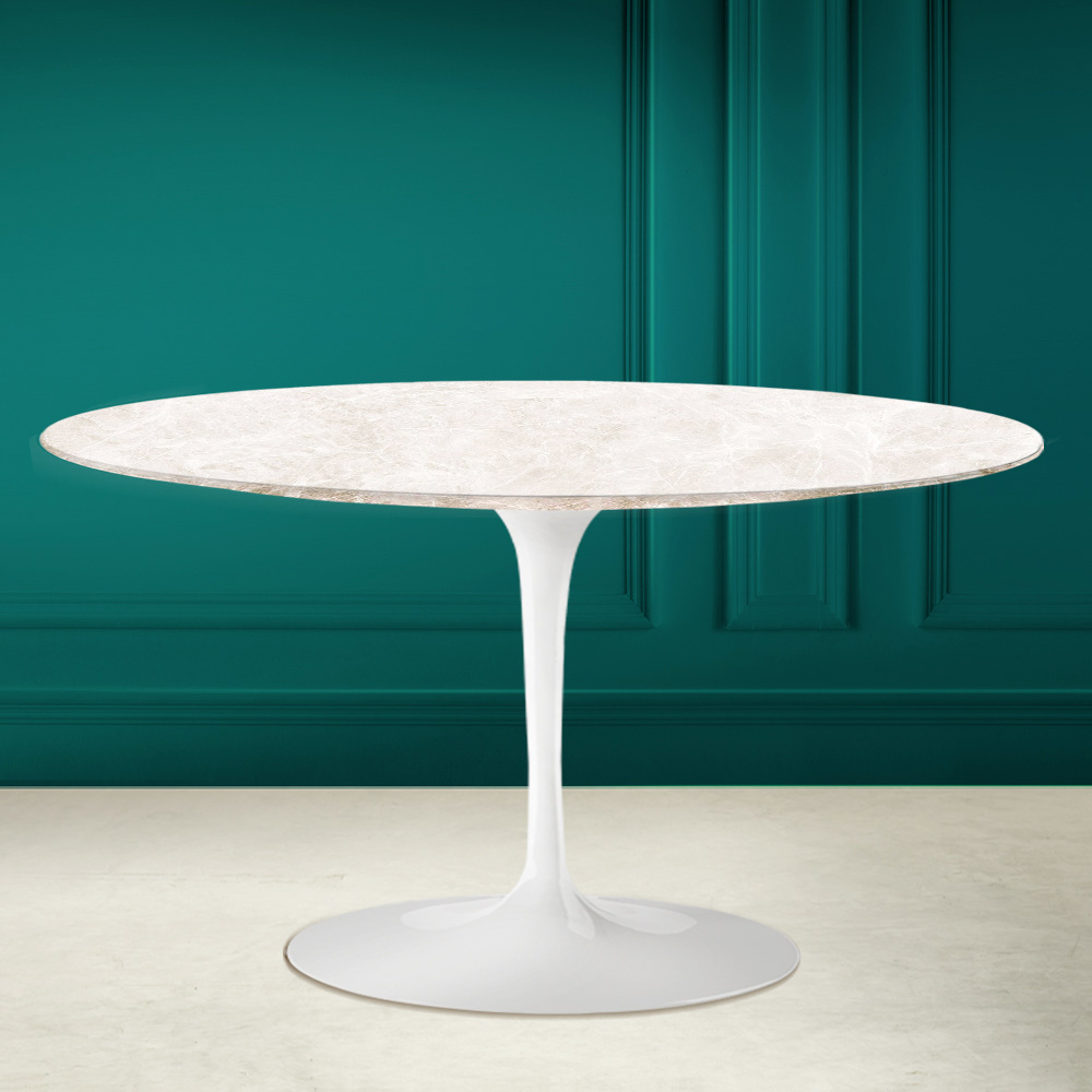 Tavolino da salotto ovale in ceramica diamond cream Made in Italy
