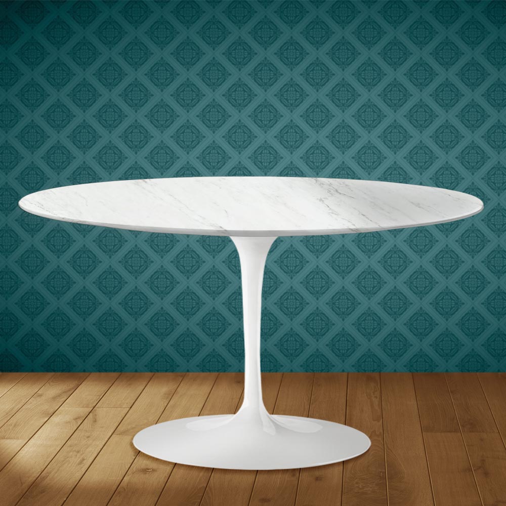 Tavolino da salotto con piano ovale in ceramica salina, effetto marmo carrara lucido, e basamento in alluminio lucido interamente realizzato in Italia. Questo complemento d'arredo ha due caratteristiche uniche: la ceramica salina e la forma ovale. La ceramica si contraddistingue per la sua grafica complessa e molto pregiata che riesce a creare un'atmosfera calda e accogliente in qualsiasi ambiente living in cui viene collocata, Questo materiale inoltre è di alta qualità e dotato di notevole resistenza. La particolare forma ovale è sempre più di moda per arredare con originalità le stanze grazie alla linea e alla sua praticità e funzionalità.