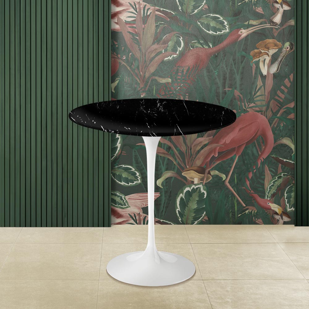 Tavolino da salotto in marmo nero marquinia e base in alluminio lucido made in Italy